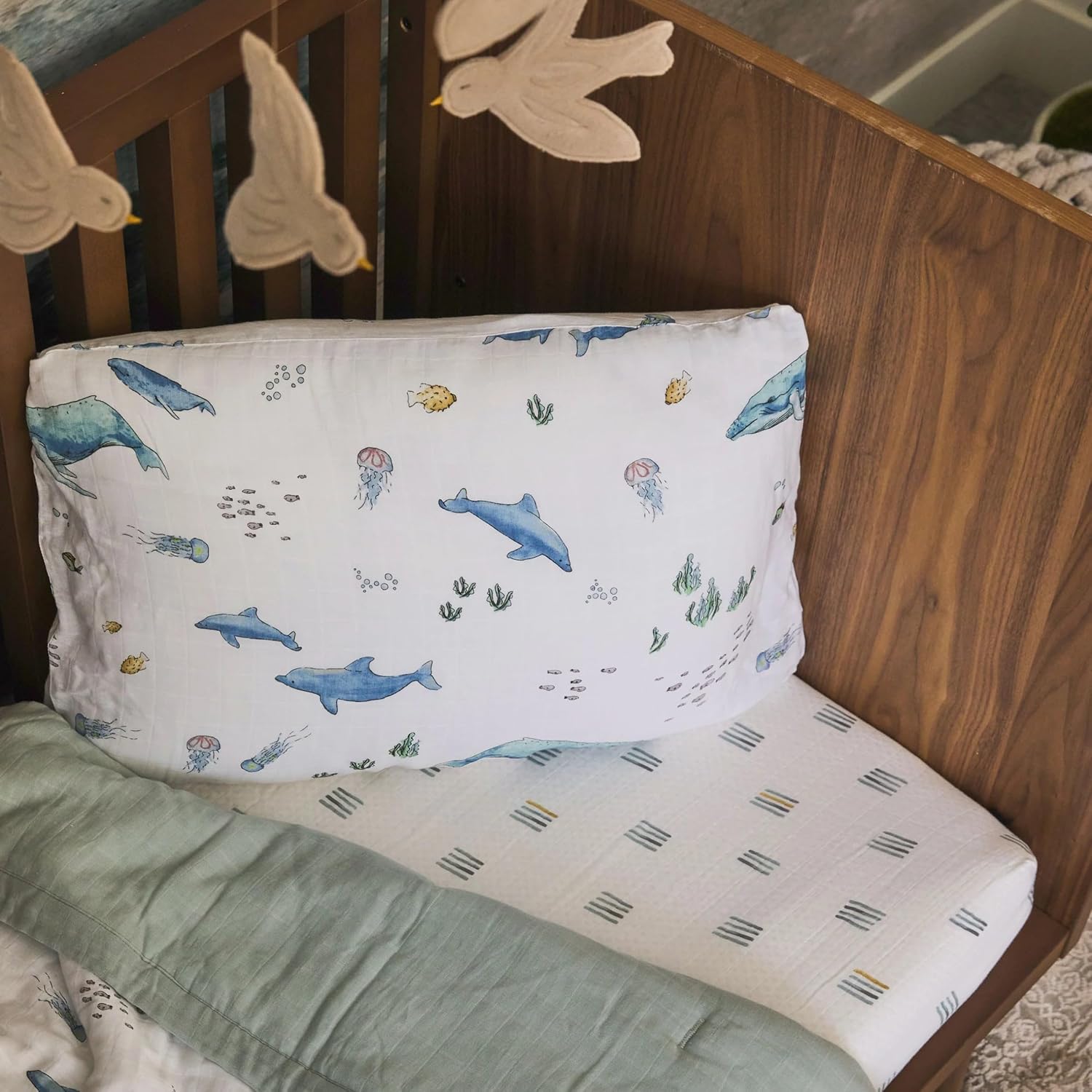 Little Unicorn Standard Pillowcase 2 Pack | Super Soft & Breathable Muslin Fabric | Snug Envelope Closure (Whales)
