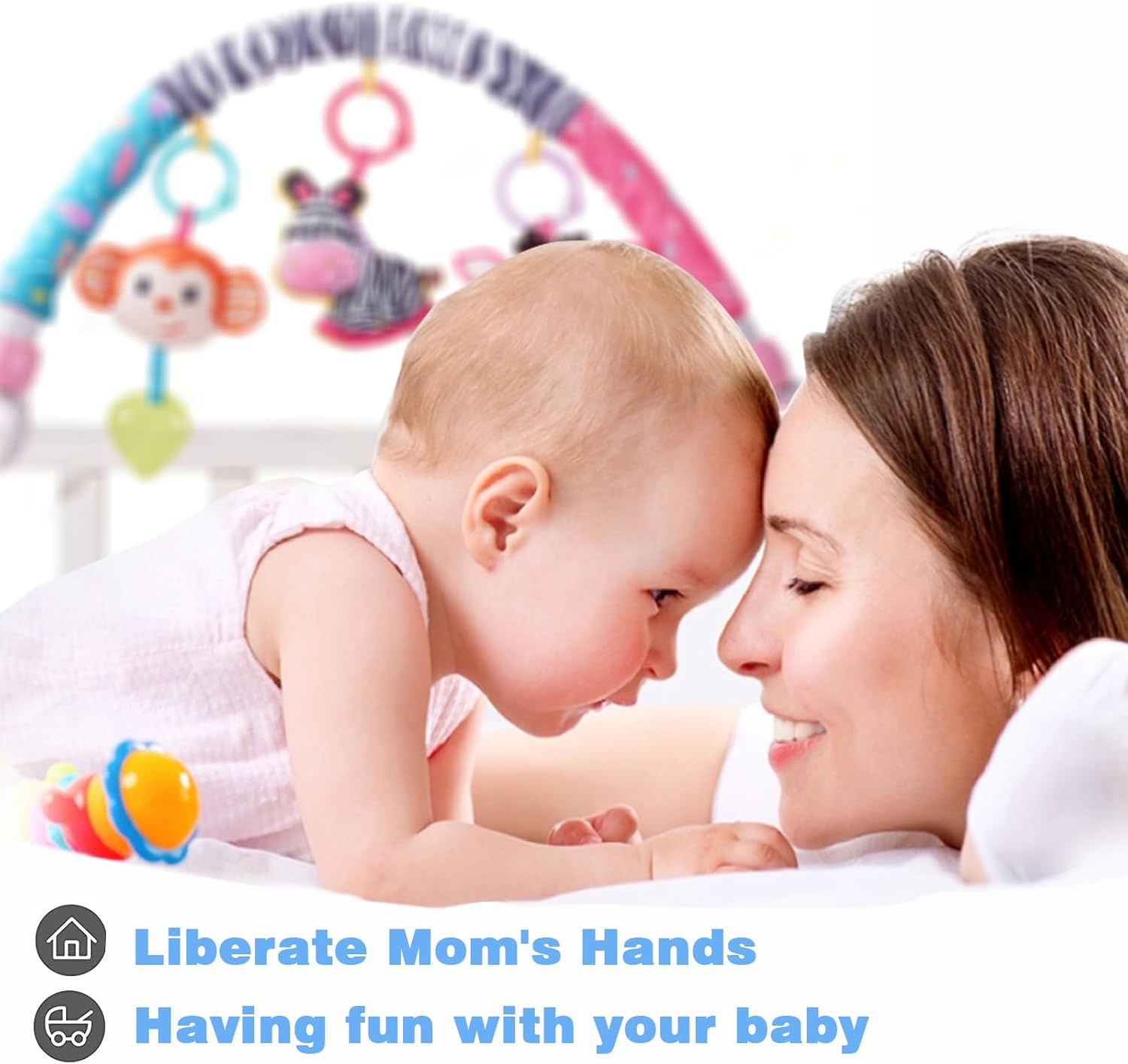 Pau1Hami1ton Baby Stroller Arch Toys, Car Seat Toys,Bouncer Toy Bar/Mobile for Bassinet,Adjustable Baby Hanging Toys Fit for Crib Bed,Stroller,Car Seat.S-19(Pink Zebra)