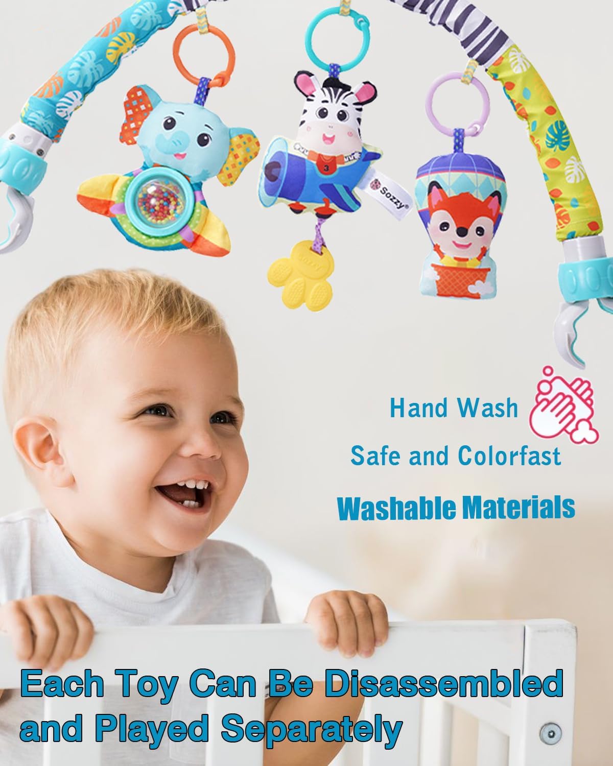 - Car seat toys,It is an early development toy.crib toys hanging made of washable materials.Each stroller toy can be detachable dsassembled and played separately.