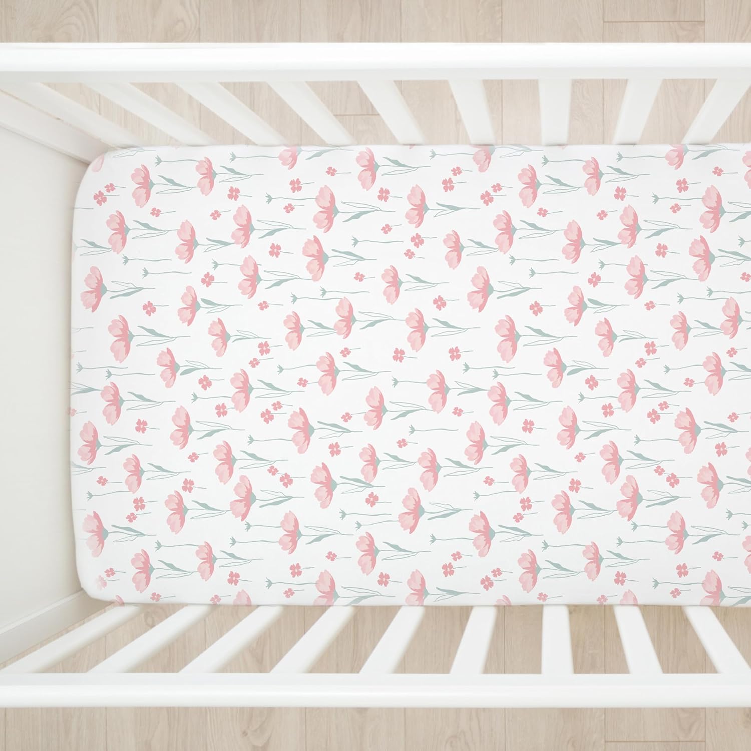 HonestBaby Unisex-Baby Fitted Crib Sheets Set Standard Mattress, 100% Organic Cotton Baby Boys, Girls, Neutral, 1 Pack - Flower Power, One Size