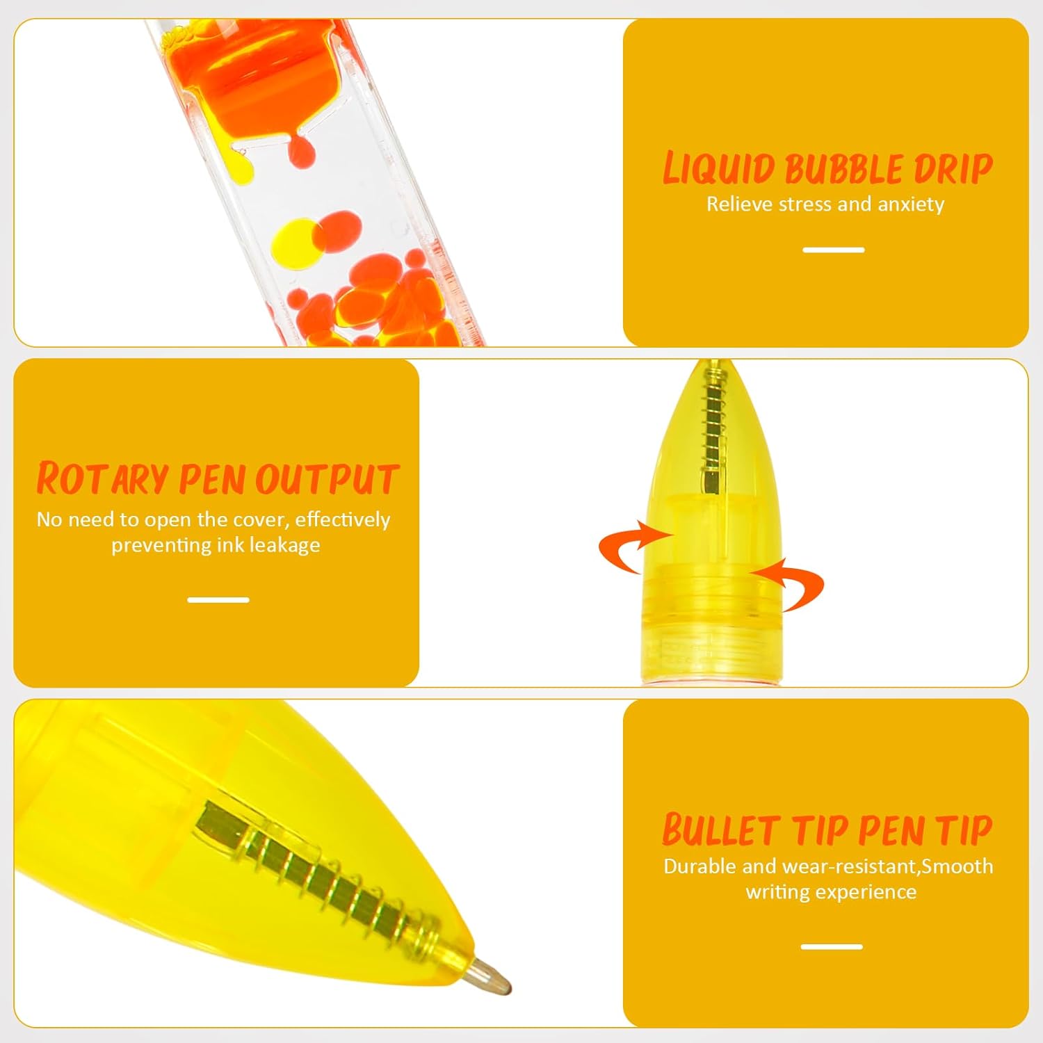 - 1.Writes Like a Regular Pen: Not only are these Liquid Motion Bubbler Pens visually captivating, but they also function as high-quality writing tools. With smooth and consistent ink flow, you can effortlessly jot down notes, create beautiful artwork, or simply doodle.