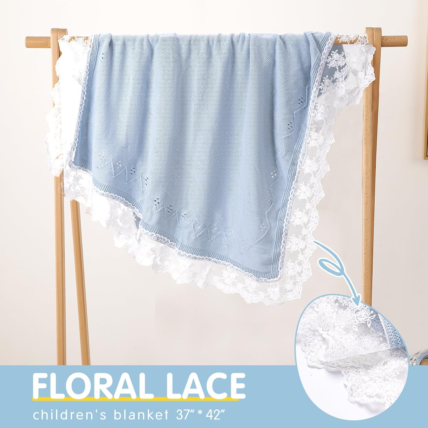 Booulfi Baby Blankets Neutral Knitted Blue Cotton Blue Baby Blanket Stroller Lace Border Crochet Winter Crib Baby Blanket New Baby Essentials