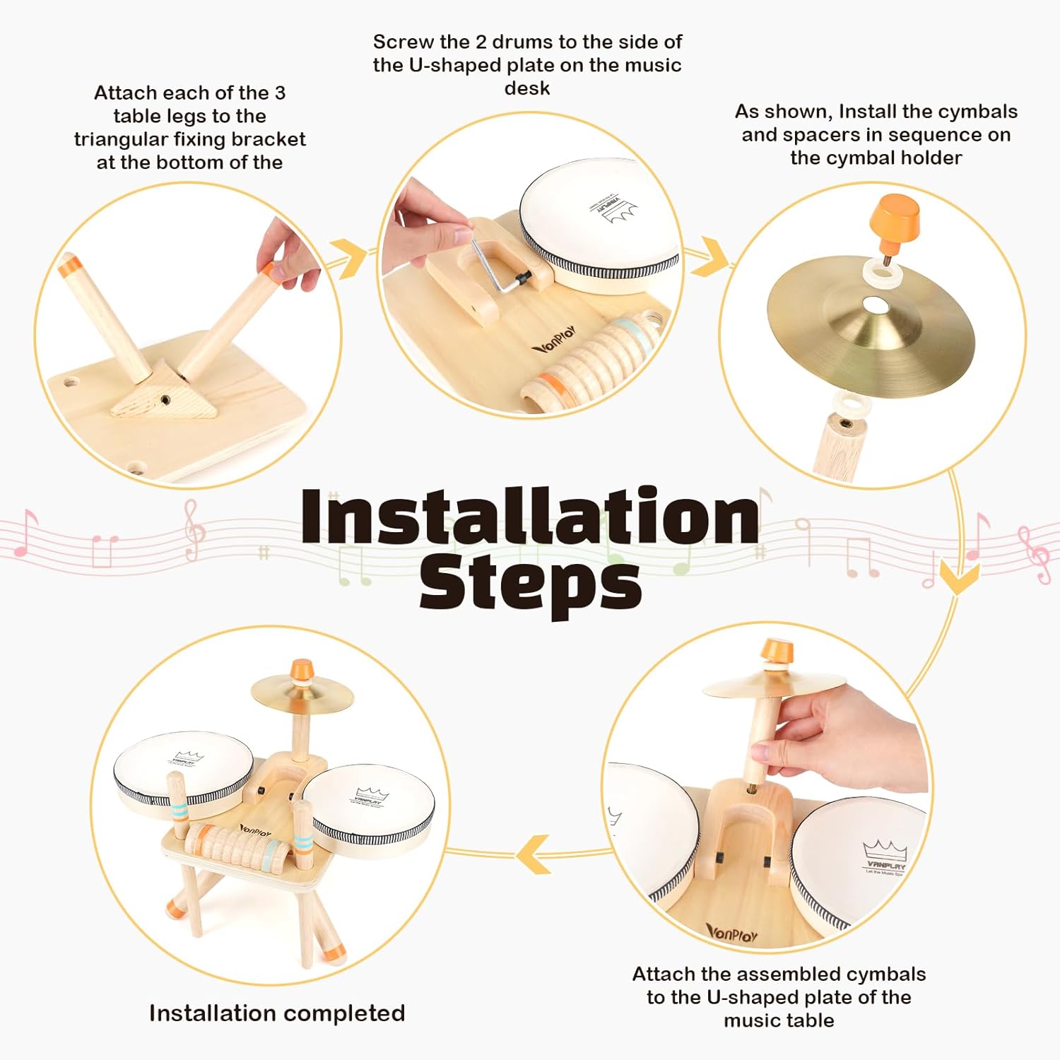 - Natural Wood & Smooth Surfaces: Our baby drum set is made of eco-friendly & natural wood material with environmental water-based paint, and CPC, CE are approved.