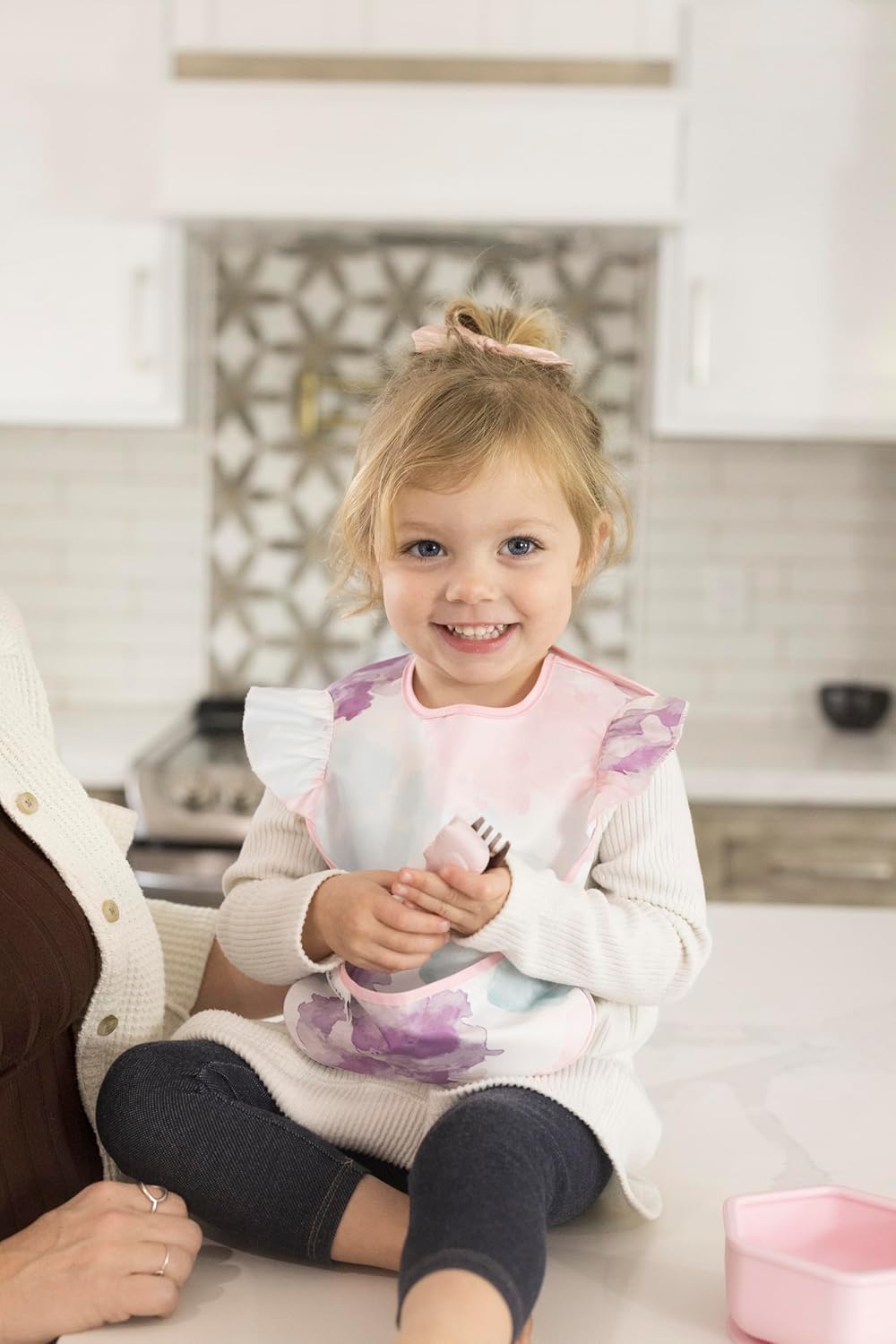 - TRAVEL MUST HAVES: Our baby feeding bib is the ultimate travel companion.Soft,lightweight and waterproof,this infant bib features a no-scratch closure that's gentle on your child.It protects clothes,floors and tables from messes.Bring your baby anywhere with confidence,knowing you've got the right toddler bib and baby smock bib for the job.