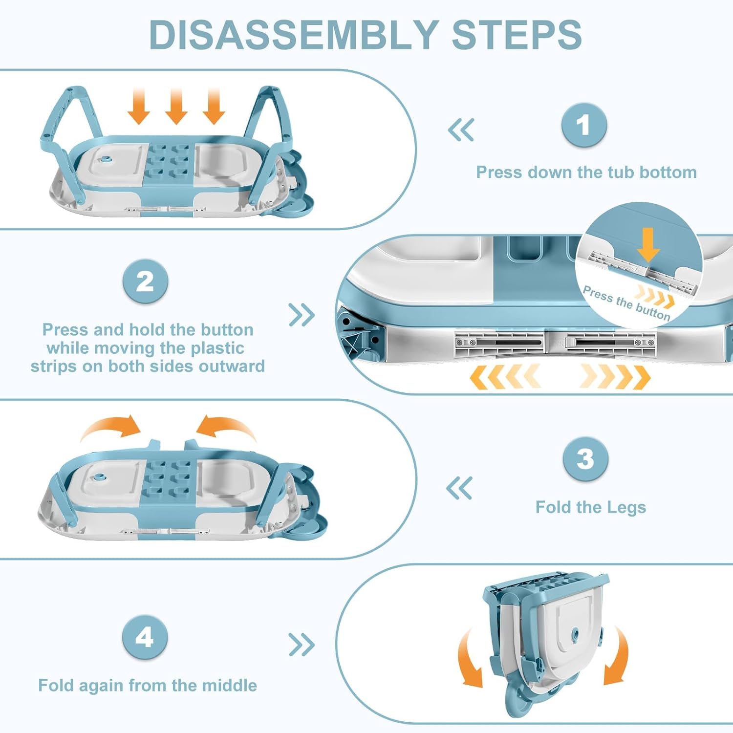 - Double-Fold Collapsible Design: TPN collapsible baby bathtub features an ingenious double-fold design, compactly measuring less than 4 inches in thickness. This facilitates effortless storage in any corner and enhances portability for on-the-go convenience, making it a perfect companion both at home and during travel. The off-the-floor drain with a user-friendly rubber plug guarantees seamless draining without the need for relocation.