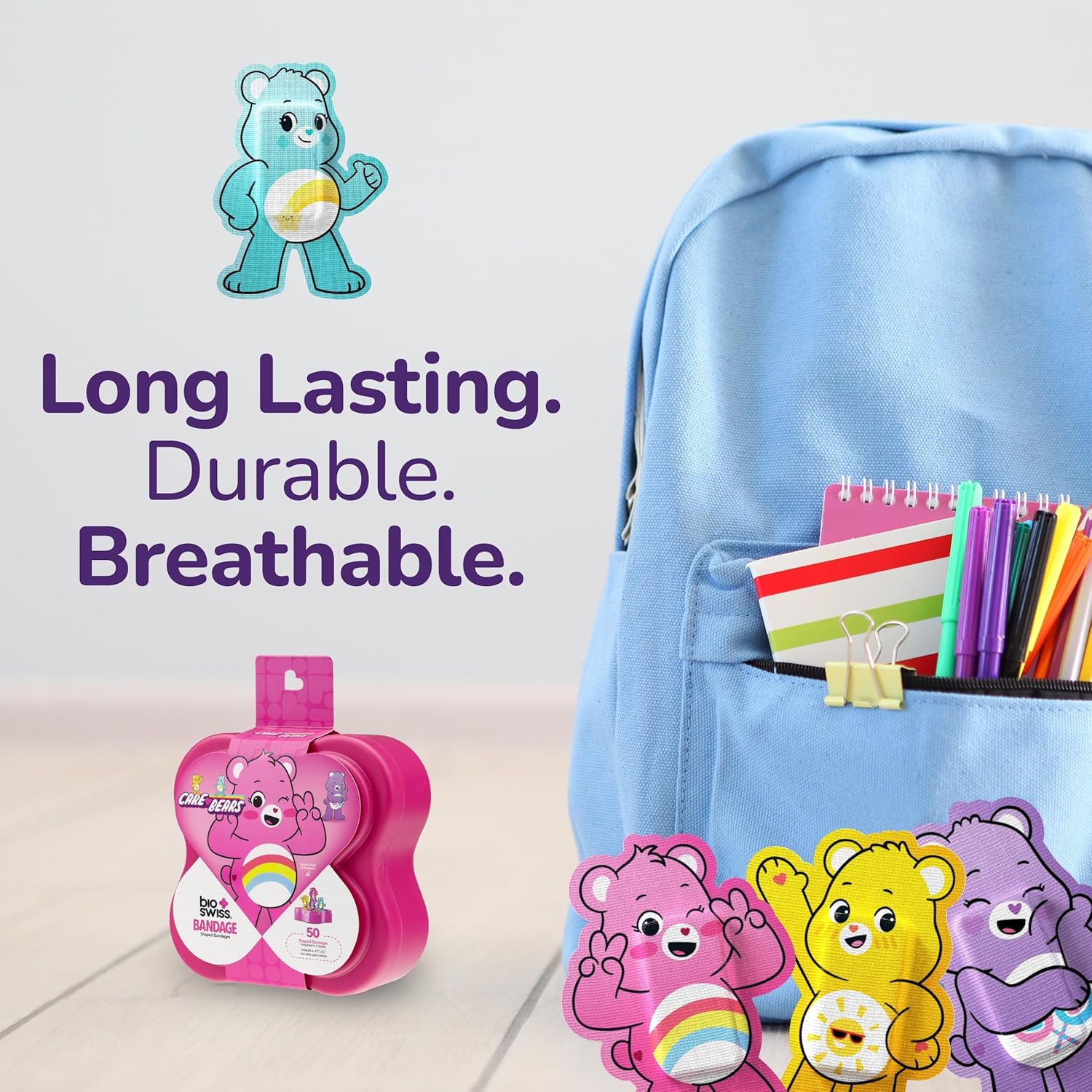BioSwiss Care Bears Bandages, Unlock The Magic Care Bear Shaped Self Adhesive Bandage, Latex Free Sterile Wound Care, Fun First Aid Kit Supplies for Kids, 50 Count