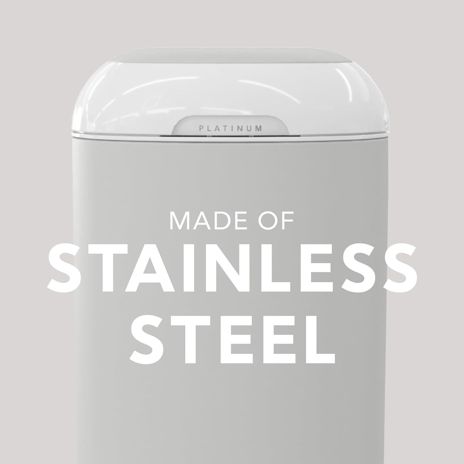 Diaper Genie Platinum Pail (Stone Grey) is Made in Durable Stainless Steel and Includes 1 Easy Roll Refill with 18 Bags That can Last up to 5 Months.