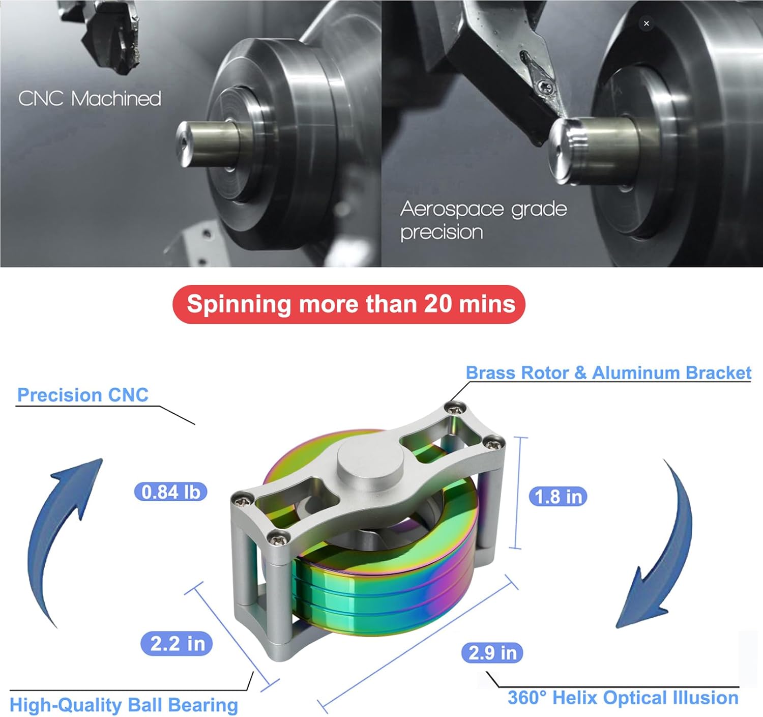 - Visual-Illusion: The brass rotor is engraved with threading to create a spiral effect, creating a 360° full-body optical illusion effect as it spins almost silently. It's a nice choice for creators, makers, and anyone looking to unleash their inner creativity and imagination.
