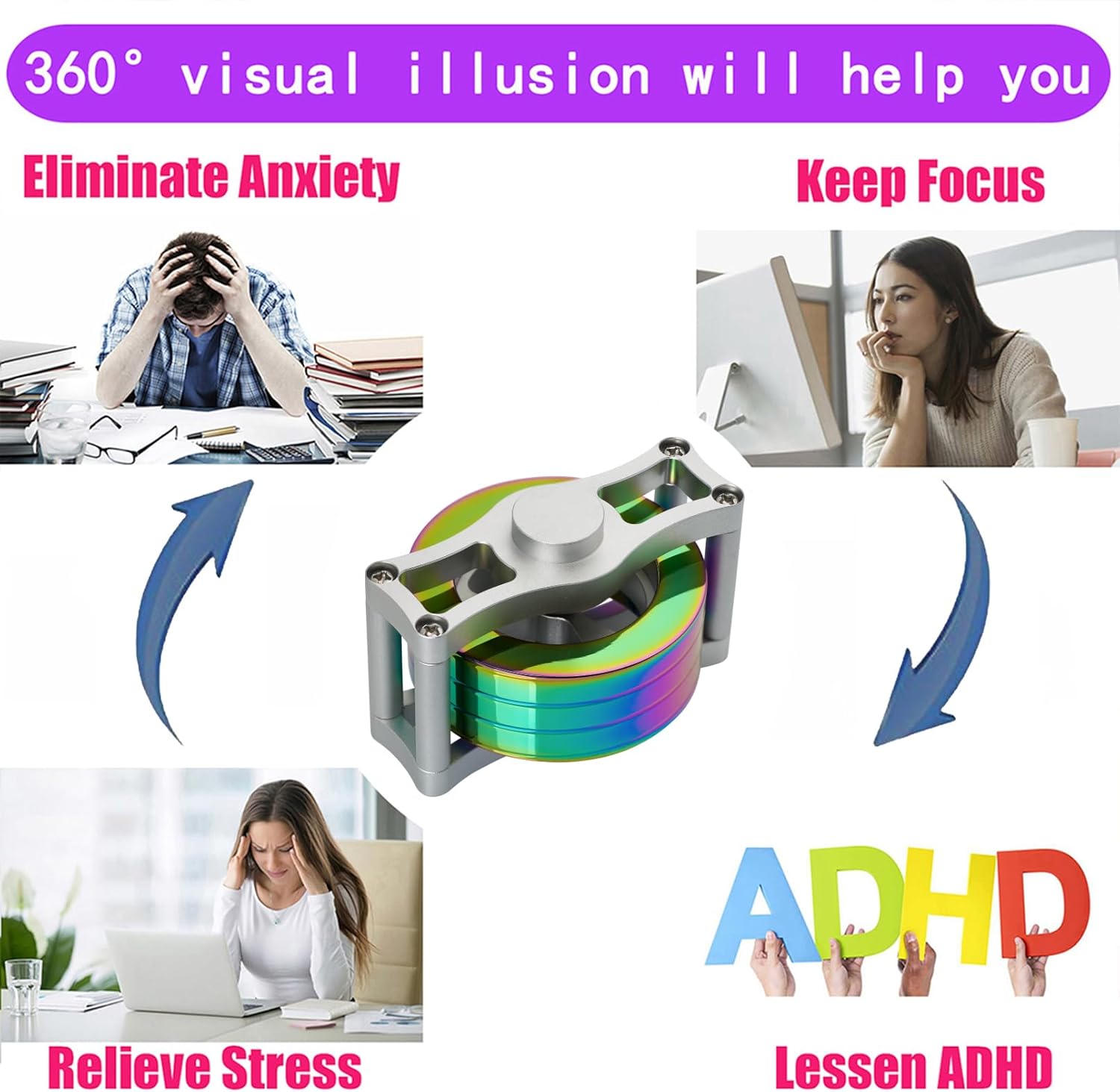 - Fidget-Toys: The Super Gyroscope is a great stress-relieving tool suitable for all ages, including children. It can let you let go of worries, stay focused in a daze, relieve stress, fight anxiety or relax during work.
