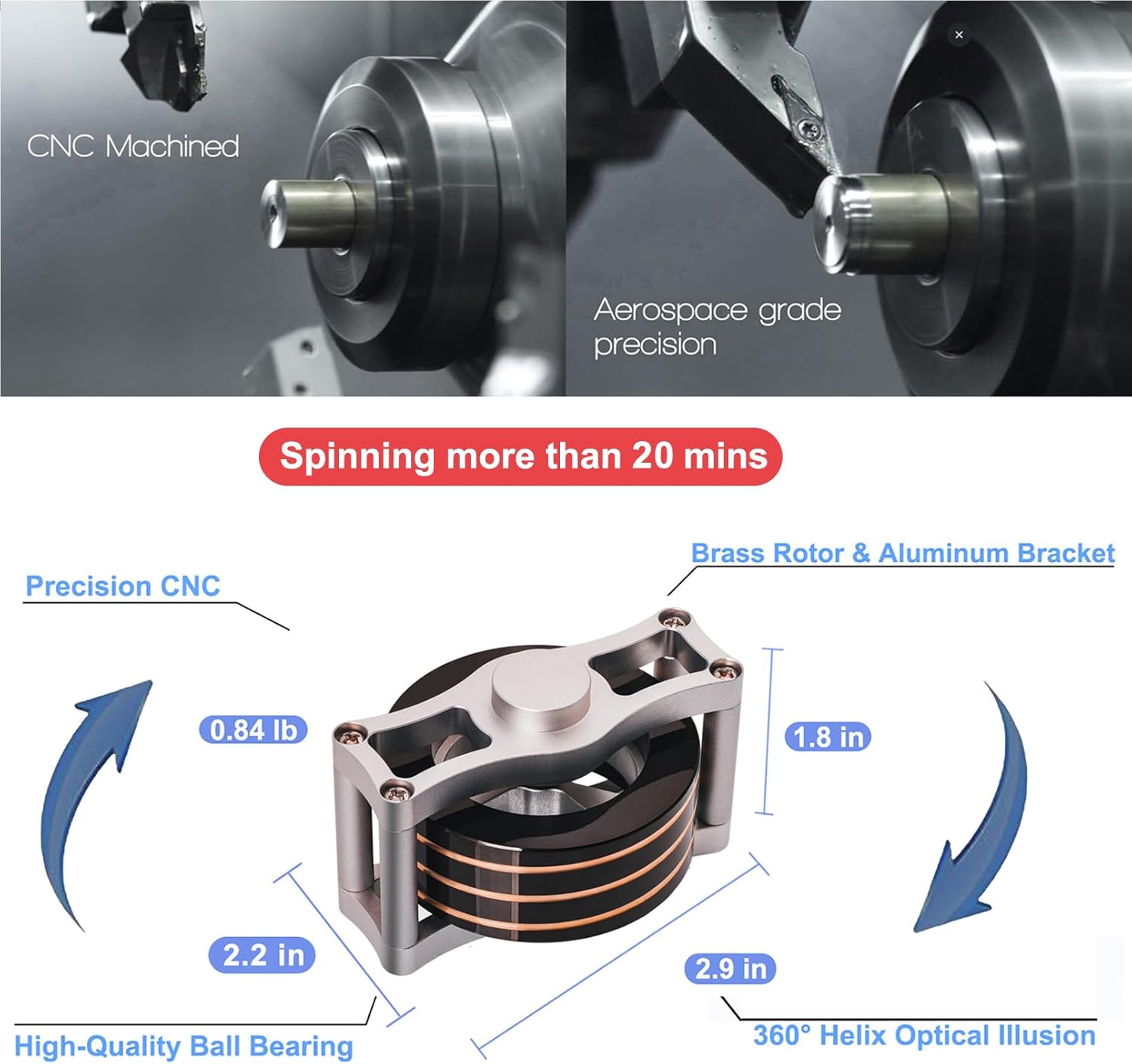 - Visual-Illusion: The brass rotor is engraved with threading to create a spiral effect, creating a 360° full-body optical illusion effect as it spins almost silently. It's a nice choice for creators, makers, and anyone looking to unleash their inner creativity and imagination.