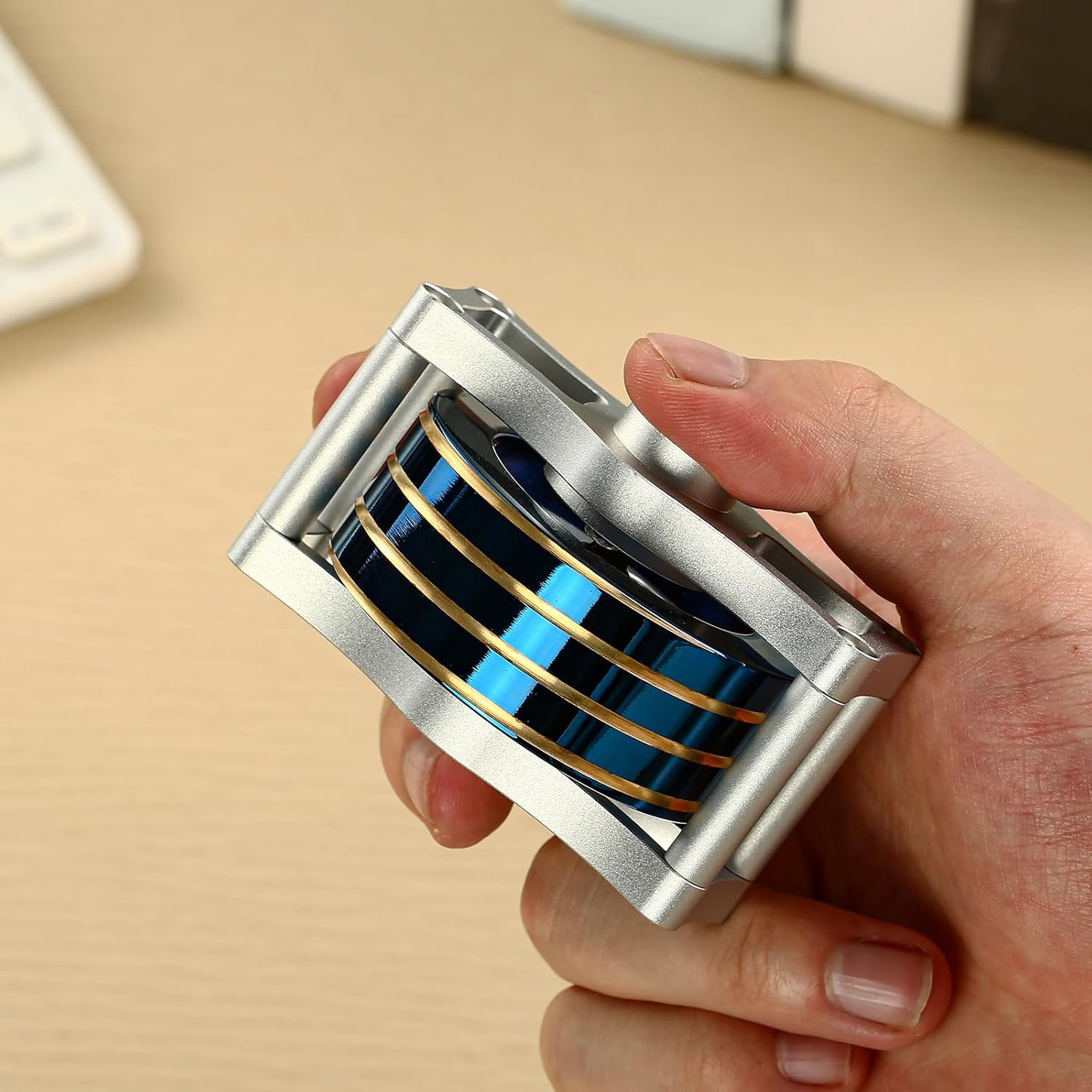 - [ELEGANT TEXTURE] Even at rest on your table, this adult fidget spinner exudes elegance, resembling a work of art. As it spins, an enchanting optical illusion unfolds, with the pattern dancing with each rotation