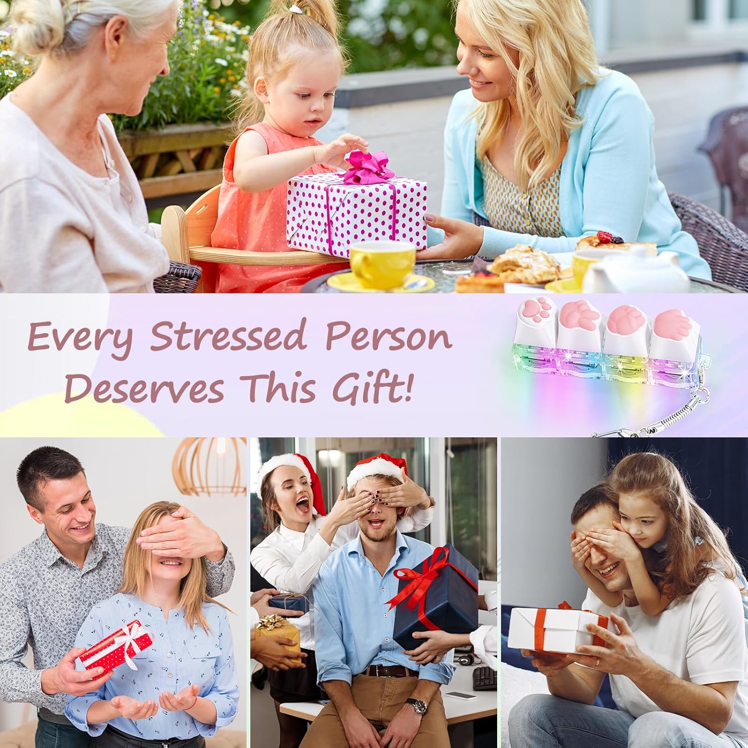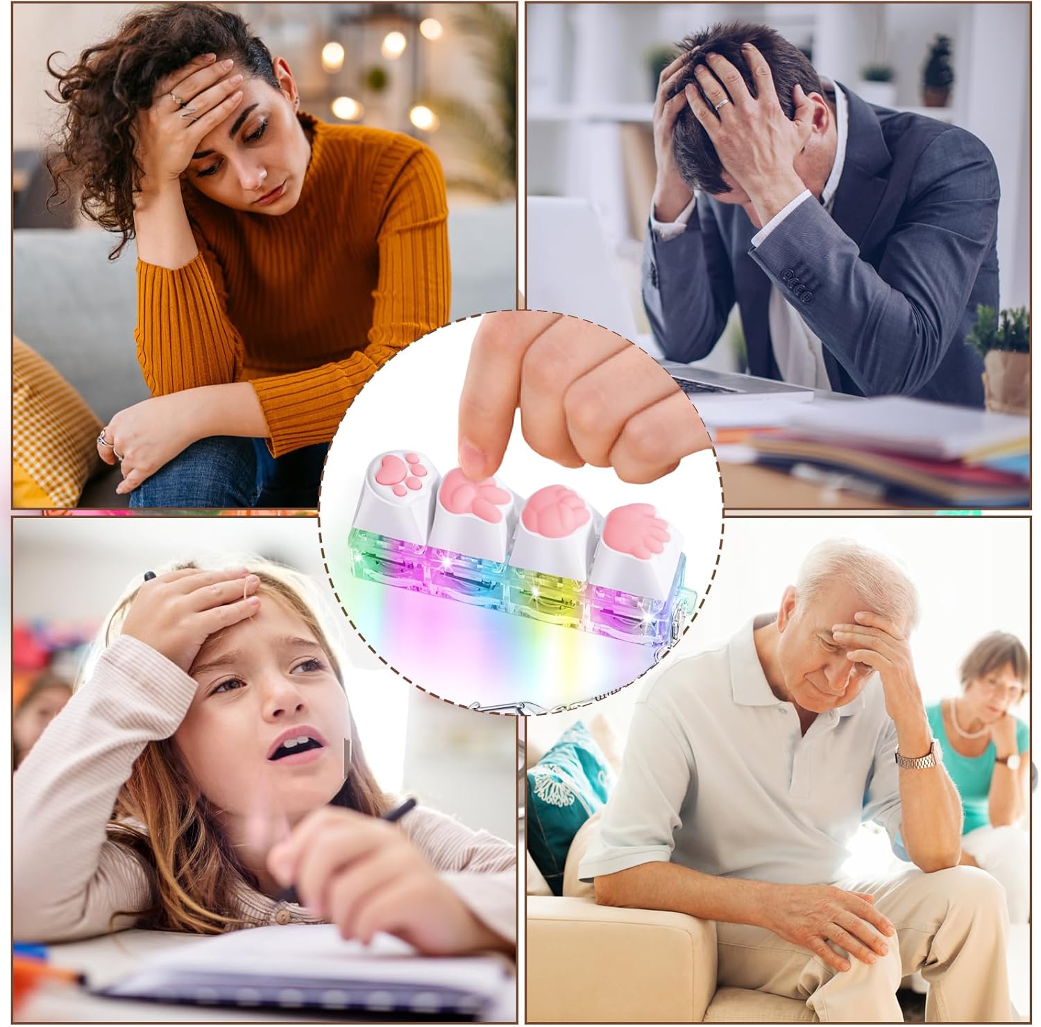 Keyboard Fidget Toys for Adults Keyboard Clicker with LED Light Keychain Fidget Sensory Fun Toys for Anxiety Decompression (RPSCatPaw, 4 in 1)