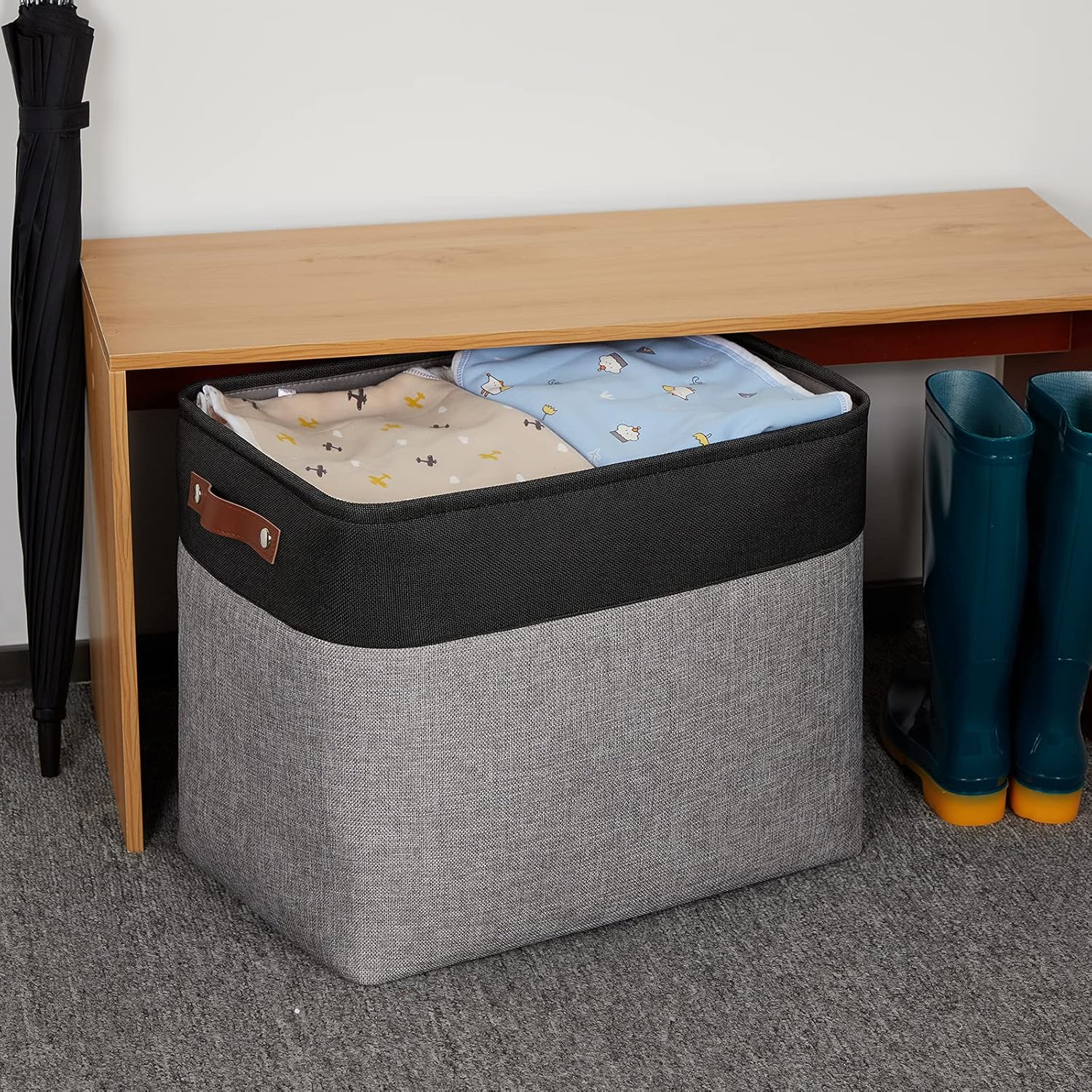 - 【Unique Design & Modern & Decorative】Set of 2 large storage baskets, dimensions(each): 17(L) x 12(W) x 15(H) inches. Collapsible storage baskets bring you organizing convenience and a sweet home. Great for socks, underwear, books, magazines, toys, baby clothes, pet products, wipes, towels, decorations, office supplies, DVDs, and gifts. The fabric baskets with neutral colors can match a lot of home styles - keeping your home nice and tidy.
