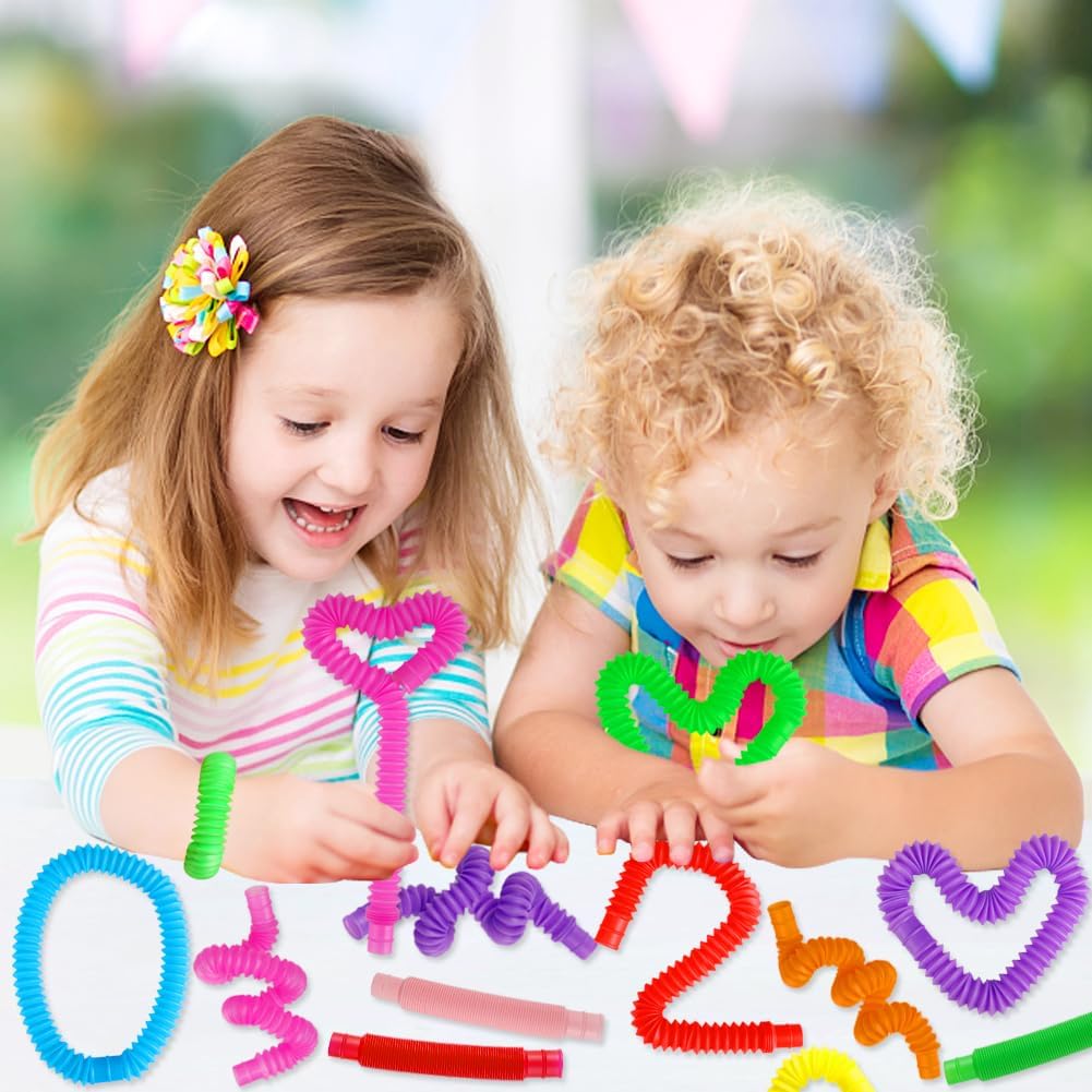 72Pack Pop Tubes, Fidget Sensory Toys Party Favors for Kids 4-8 8-12 Anxiety Stress Relief Toys Treasure Box Prizes Goodie Bag Stocking Stuffers Birthday for Toddlers Boys Girls