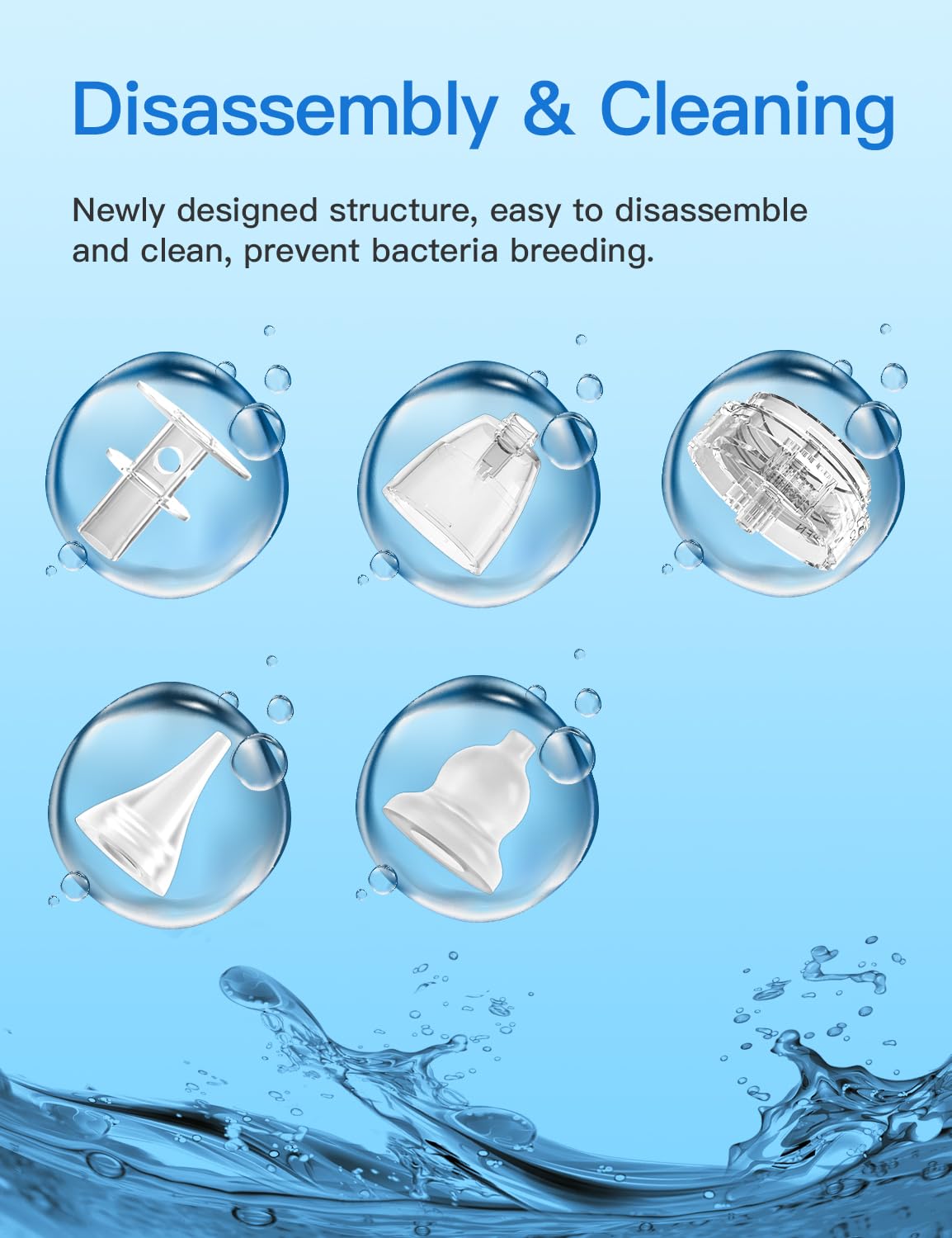 - Rechargeable and IPX4: The nasal aspirator supports USB charging and the IPX4 waterproof technology is designed to be splash-proof (not submersible), extending the life of the nasal aspirator.