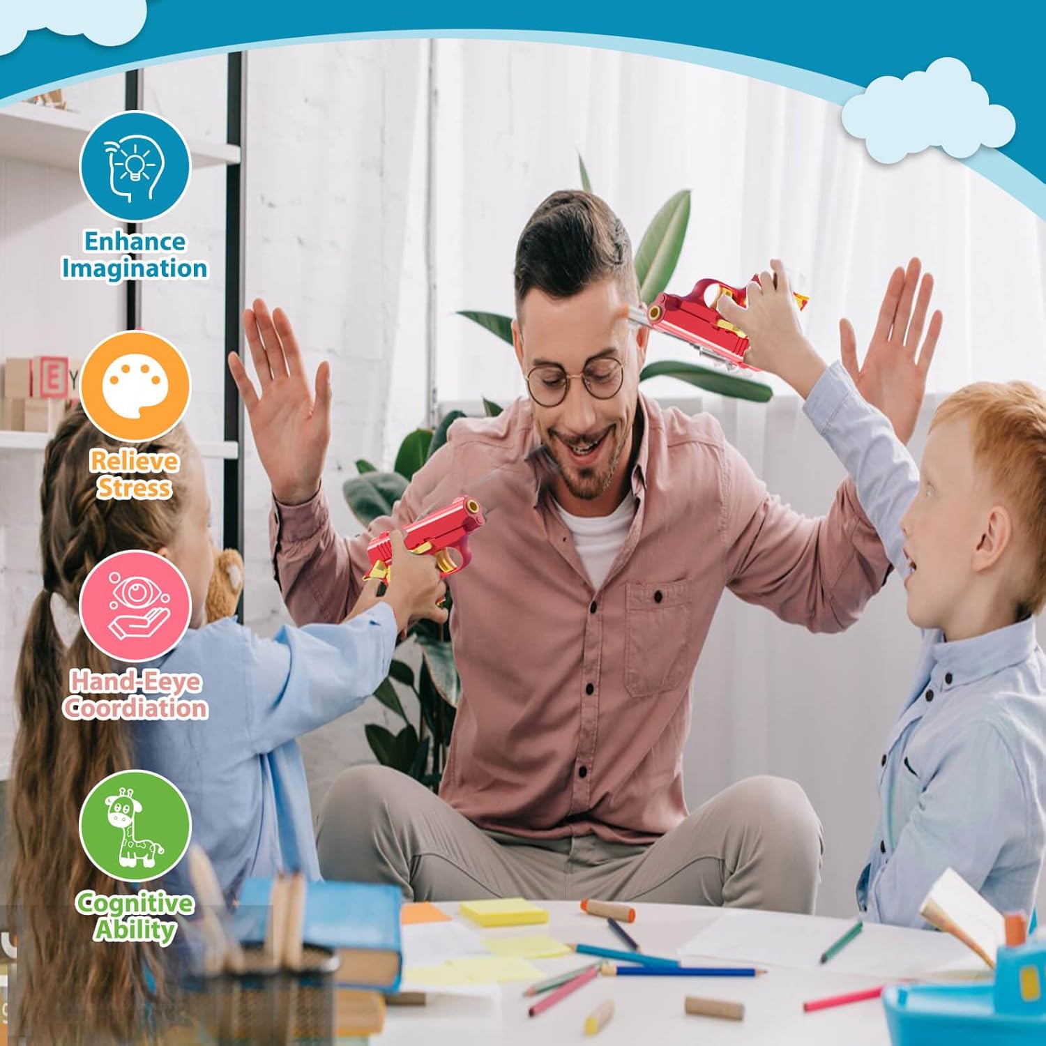 - Stress Relief Toy: A cool stress relief toy that can effectively relieve stress; Pulling the trigger to make the chamber back and forth in a continuous rebound; Give you a great decompression experience;Say no to bad emotions