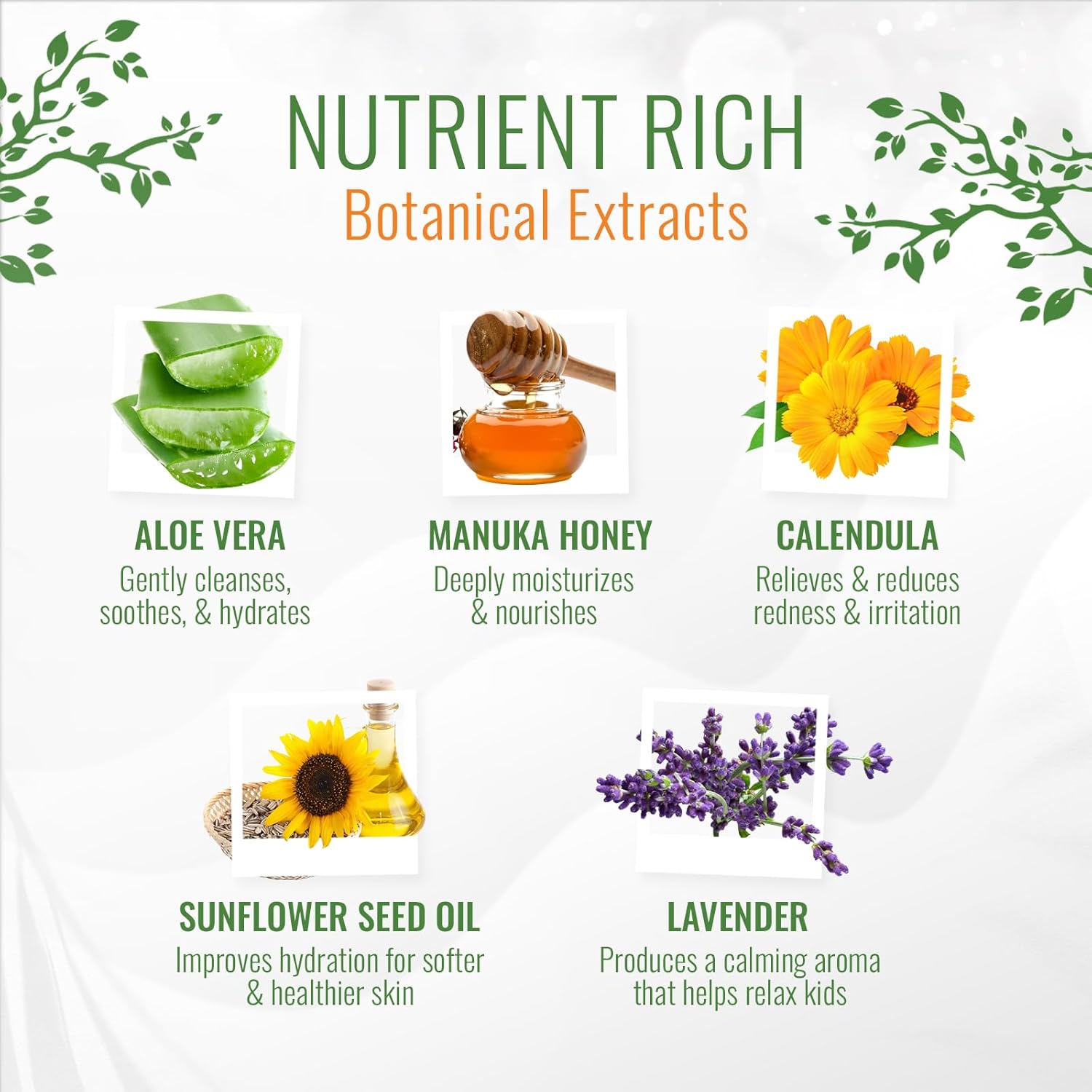 - NATURALLY NOURISHING ECZEMA WASH FOR KIDS - Made with manuka honey, sunflower seed oil, and soothing botanicals, this eczema body wash for babies support soft, healthy-feeling skin from head to toe.