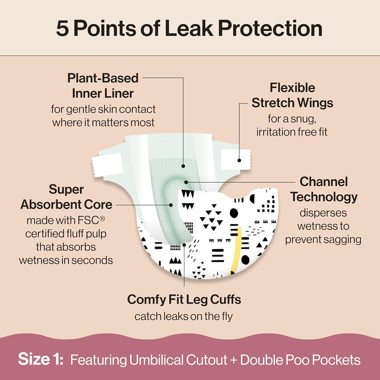 The Honest Company Clean Conscious Diapers for Delicate Skin | Up to 100% Leakproof | Hypoallergenic, Fragrance Free | Gender Neutral | Super Club Box, Size 1 (8-14 lbs), 136 Count (Prints May Vary)
