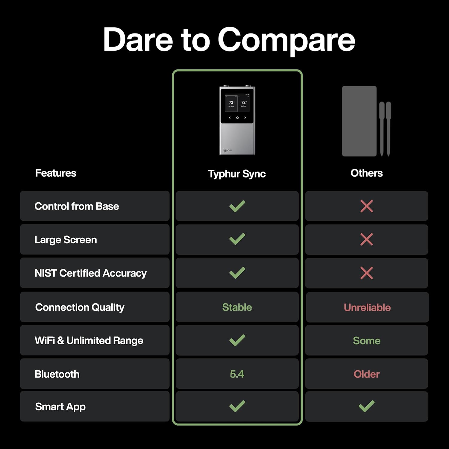 - 6 Sensors: With 5 optimally placed internal sensors and an ambient sensor on the tip, the Typhur Sync wireless meat thermometer can accurately measure doneness and even predict when your cook will be done with intelligent algorithm.