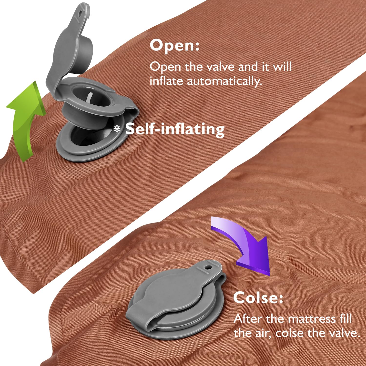 - Self-inflating Design: Free-flow valve inflates the mat with no air pump required.