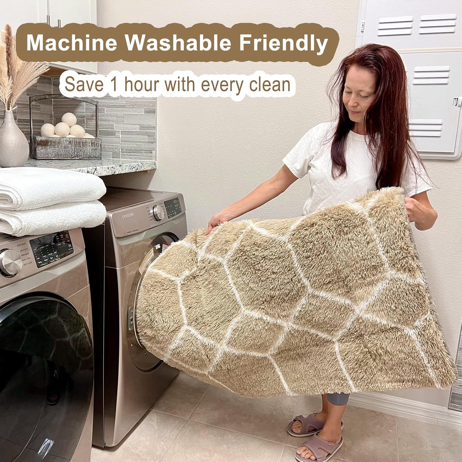 - [ Upgraded Machine Washable ]: For daily cleaning, please try to clean the rug with a vacuum or shake cleaning, dust and debris on the surface can be removed easily. For deeper cleaning, machine wash separately on cold with mild detergent then line dry. You can effortlessly keep your rug looking fresh and pristine, saving you time and effort on maintenance. We own the copyright to this geometric pattern.