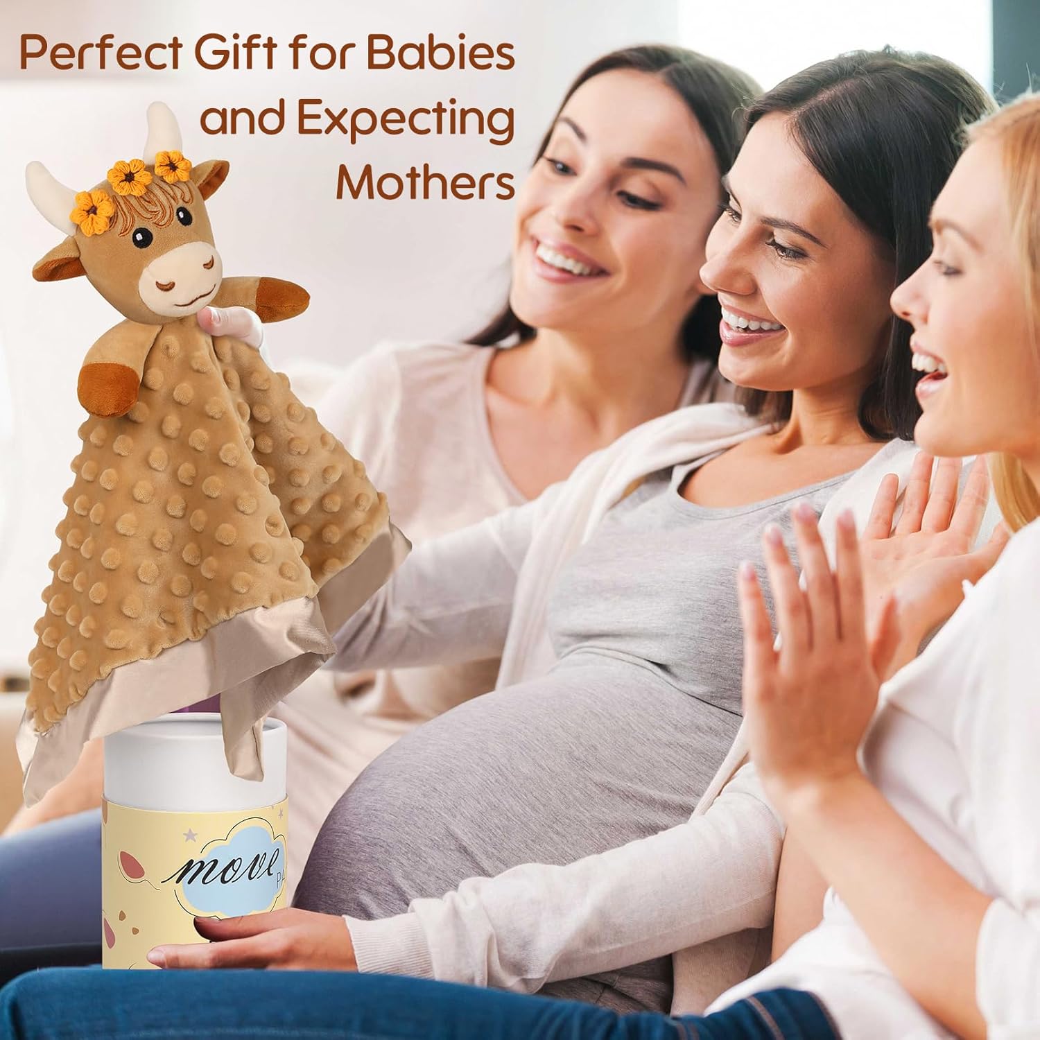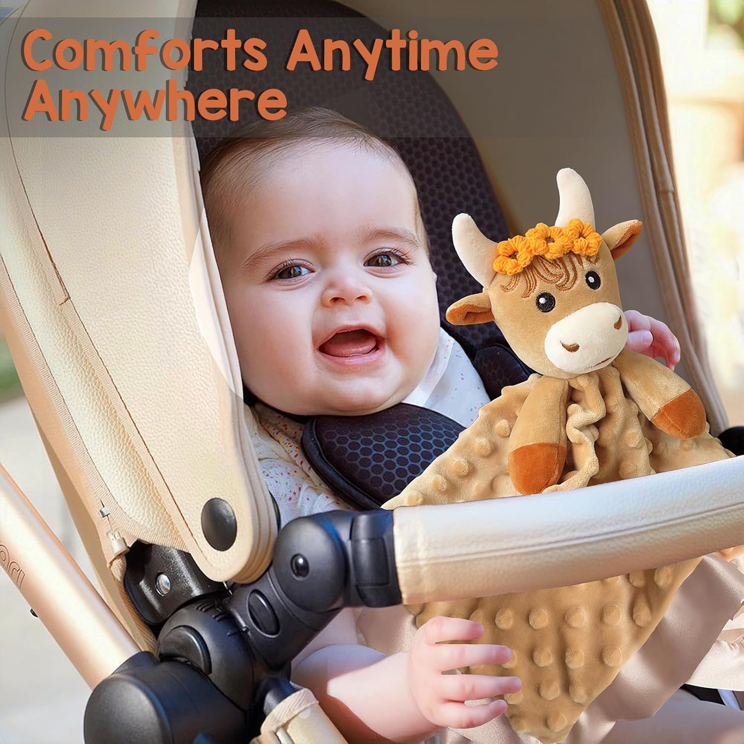 Loveys for Babies, Soft Baby Security Blanket Lovies for Babies, Stuffed Animals Blankie for Newborn Infant with Baby Snuggle Toy, Gilrs Gifts Highland Cow Security Blanket 16 Inch
