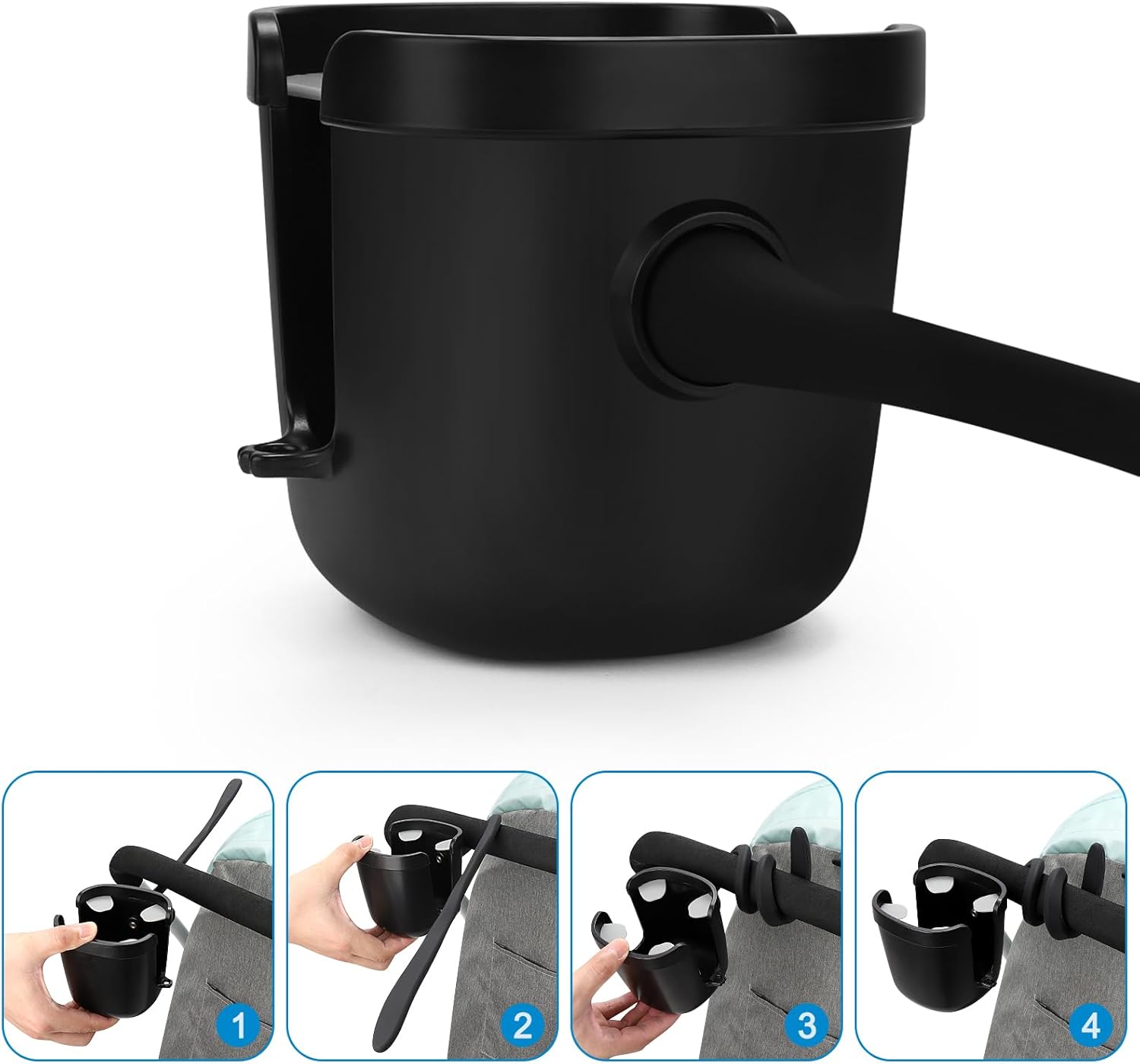 - This 2-in-1 stroller cup holder with a keys holder, it can load drink bottles and keys at the same time.