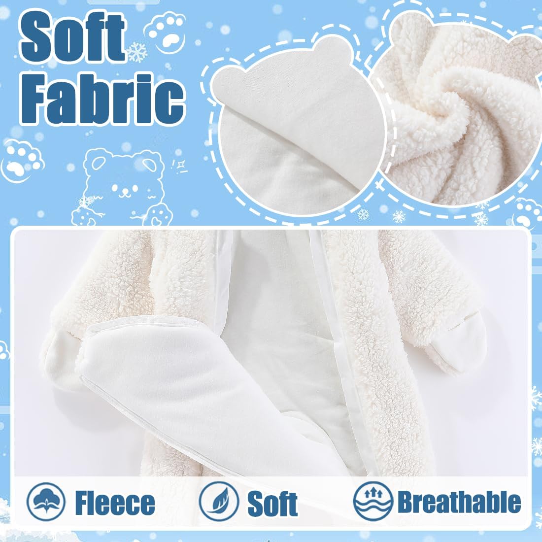 • ๐Ÿปใ€High Quality Fabricใ€‘ The newborn baby winter jumpsuit bear onesie hooded snowsuit made of high-quality cotton polyester, the inner layer is cotton, the outer layer is fleece fabric, soft and warm, protect the baby's skin, warm your little one throughout autumn and winter.