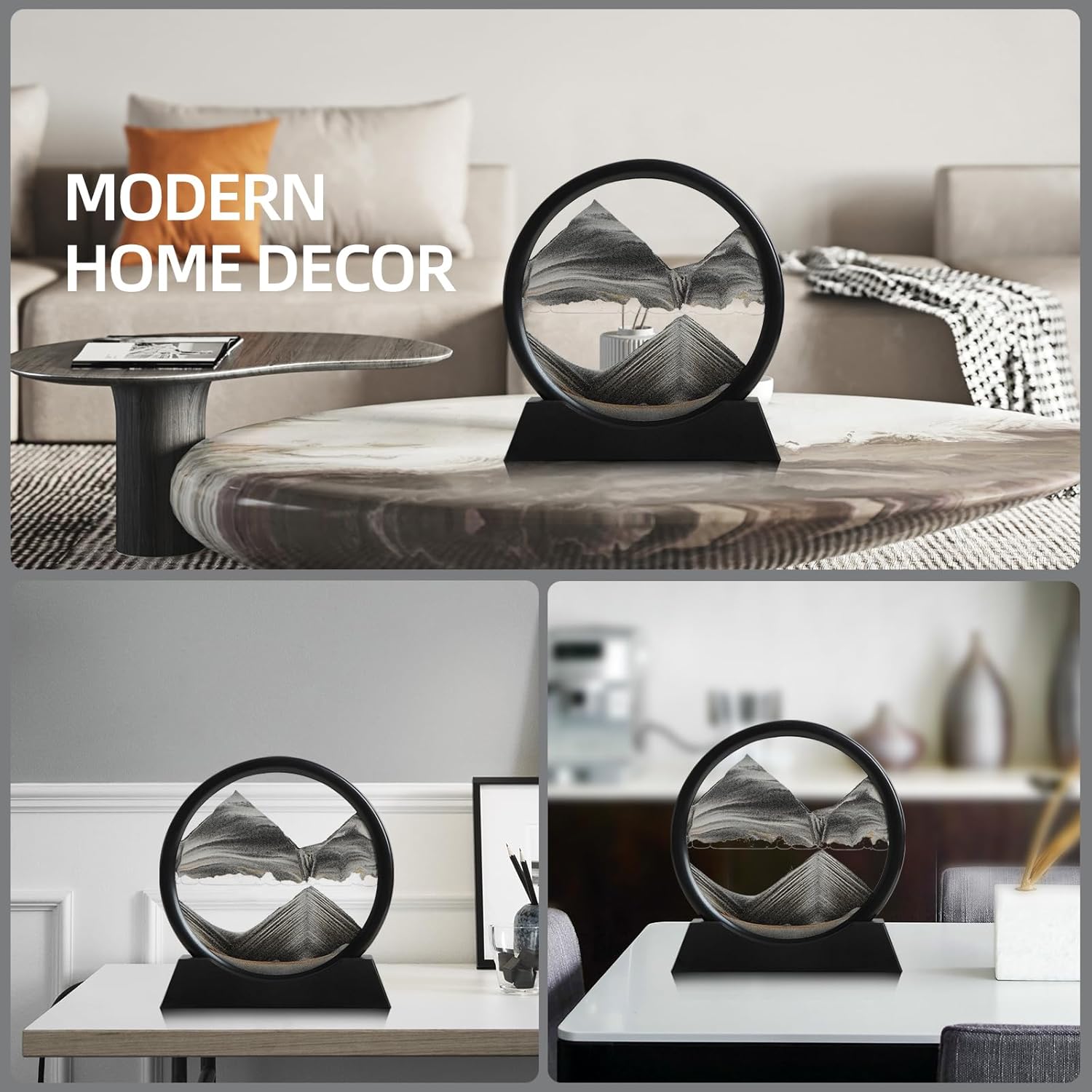 - CREATIVE DECORATION: The sand painting features an excellent design that adds meaning to your space. With its 360° rotation, each turn brings a new image as the sand starts to move. This visually pleasing artwork creates a sense of calm and relaxation, making it a glamorous decoration for any occasion.