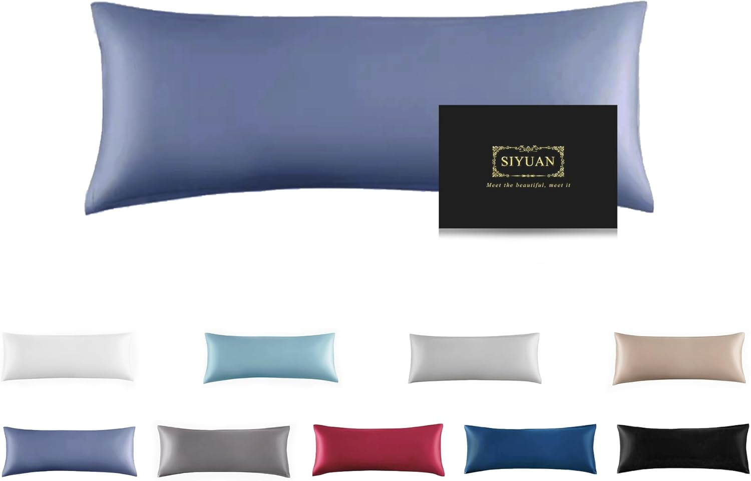 Mulberry Silk Pillowcase for Hair and Skin,Cooling Silk Pillow Case with Hidden Zipper,Allergen Proof Dual Sides Soft Breathable Smooth Silk Pillow Cover for Women (Grayish Blue, Body)