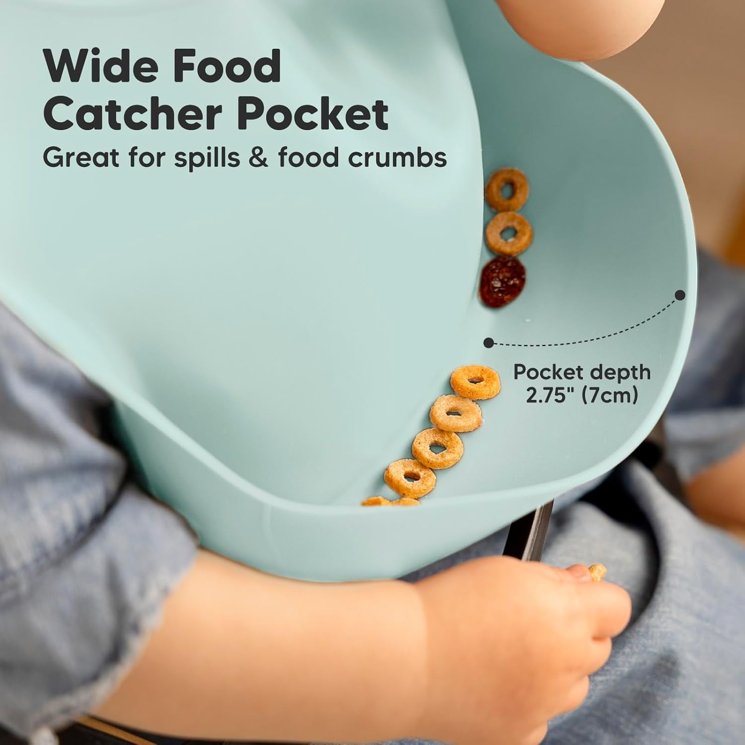 - Durable, Sturdy Pocket - The KeaBabies Prep Silicone Bibs come with a reliable, deep and sturdy spill pocket that catches any food or liquids, ensuring a mess-free mealtime for your little one.