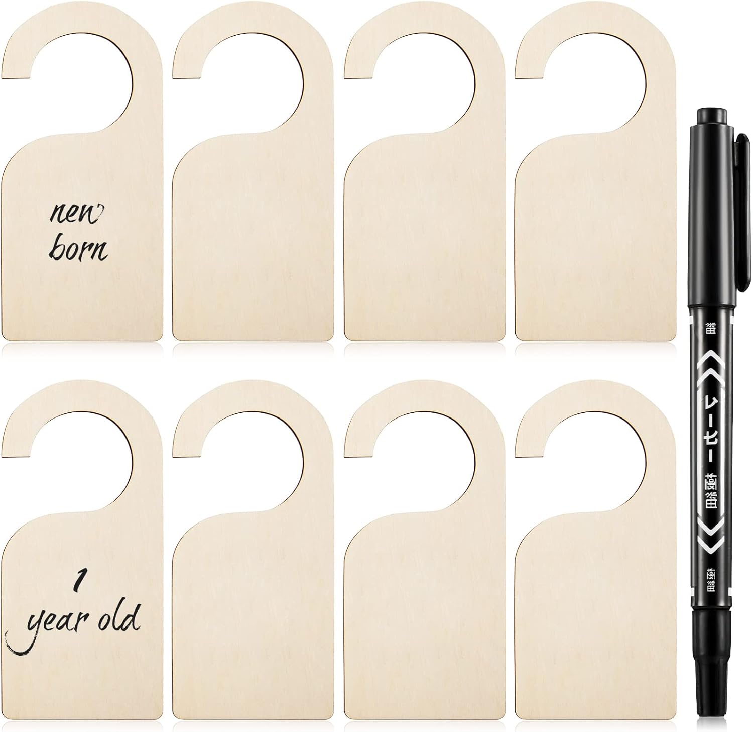 Patelai 50 Pieces Blank Wooden Clothing Rack Divider Closet Blank Organizers Hanger Separators Hanging Closet Divider with Marker Pen for Home Nursery Clothes