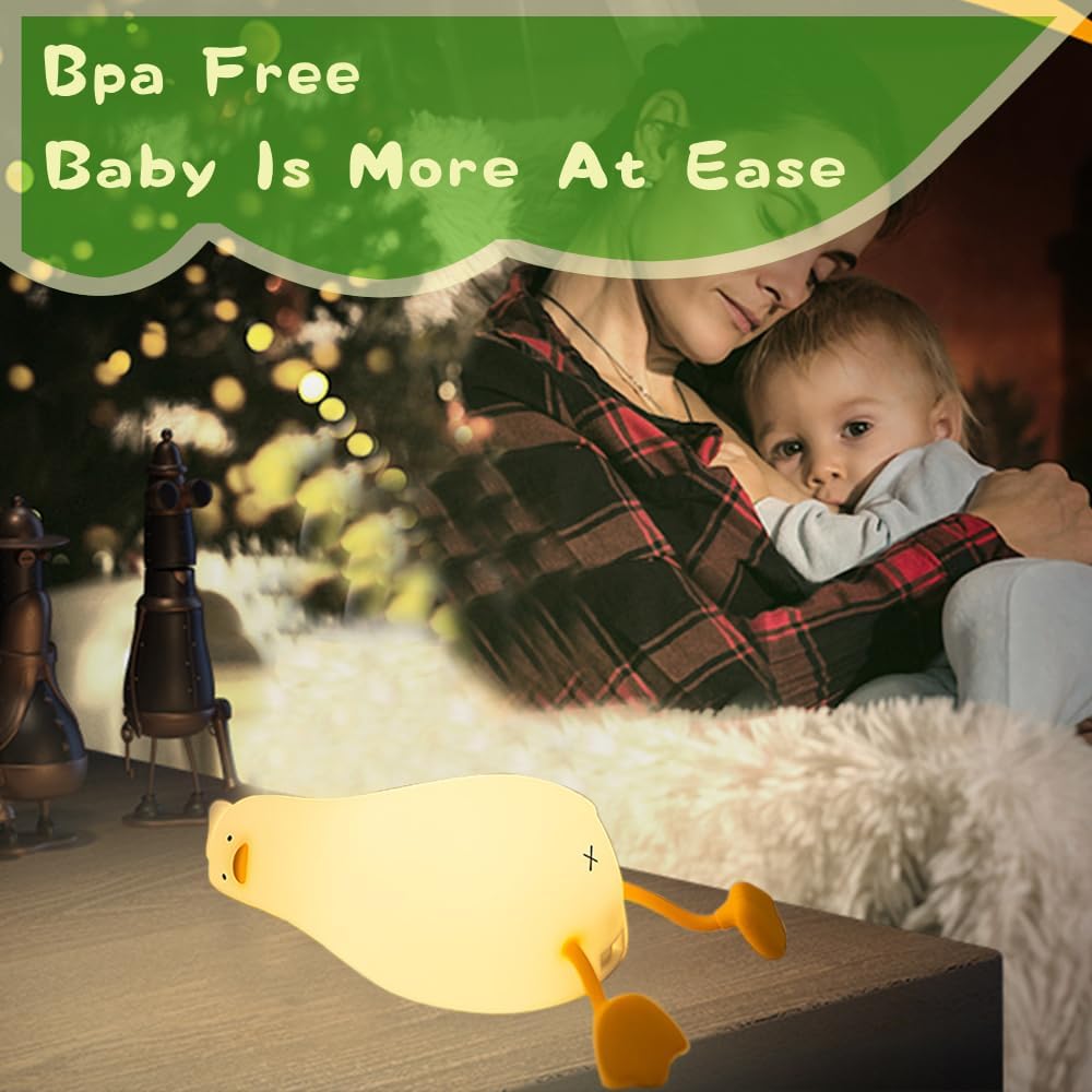 - Adorable Cute Duck Night Light:LED Squishy Lazy Duck Light Laying Down,Light up kids dreams! features a soft and cuddly kawaii design, perfect for adding a touch of whimsy to any bedroom or living room. duck nightlight is not just a practical bedside companion but also a delightful decorative piece for bedrooms, college dorms, or classroom desks. The duck light BPA free,and Baby safety silicon material ensures safety and durability, making it a great choice for both adults and children.