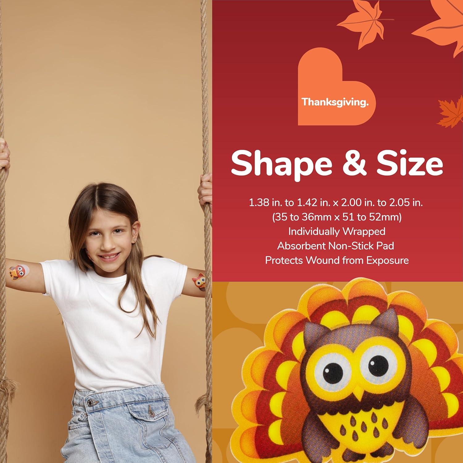 - EASY TO CARRY AND USE: These cute and colorful Thanksgiving children's bandages are easy to take with you for travel, and easy to store in a home first aid kit; these healing bandages are perfect for school, summer camp, camping trips, weekend getaways and more