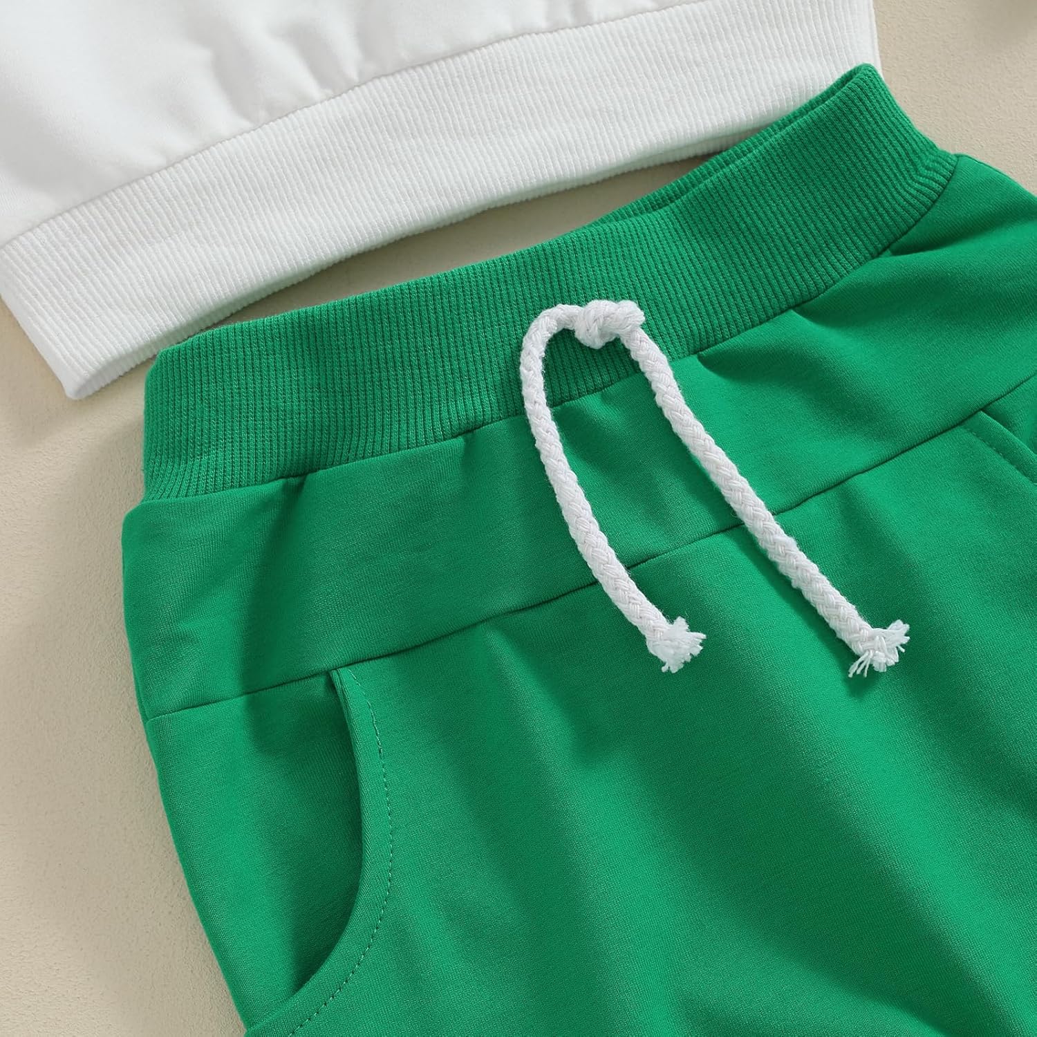 - Design: Toddler boys casual 2pcs outfit sets, lucky long sleeve crew neck pocket pullover sweatshirt jumper tops, drawstring casual green long pants joggers, toddler baby boy sweatsuit, cute toddler boy fall clothes.