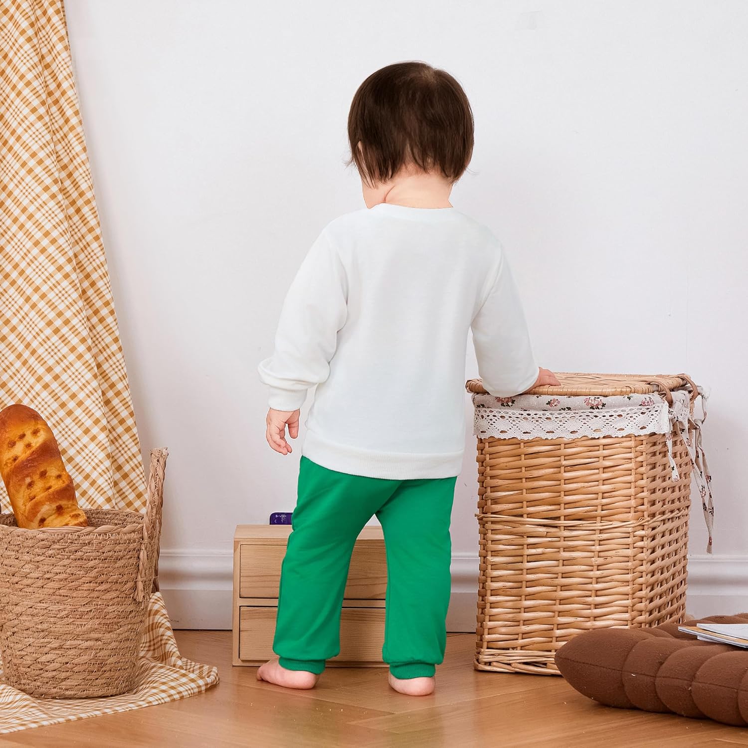 - Design: Toddler boys casual 2pcs outfit sets, lucky long sleeve crew neck pocket pullover sweatshirt jumper tops, drawstring casual green long pants joggers, toddler baby boy sweatsuit, cute toddler boy fall clothes.