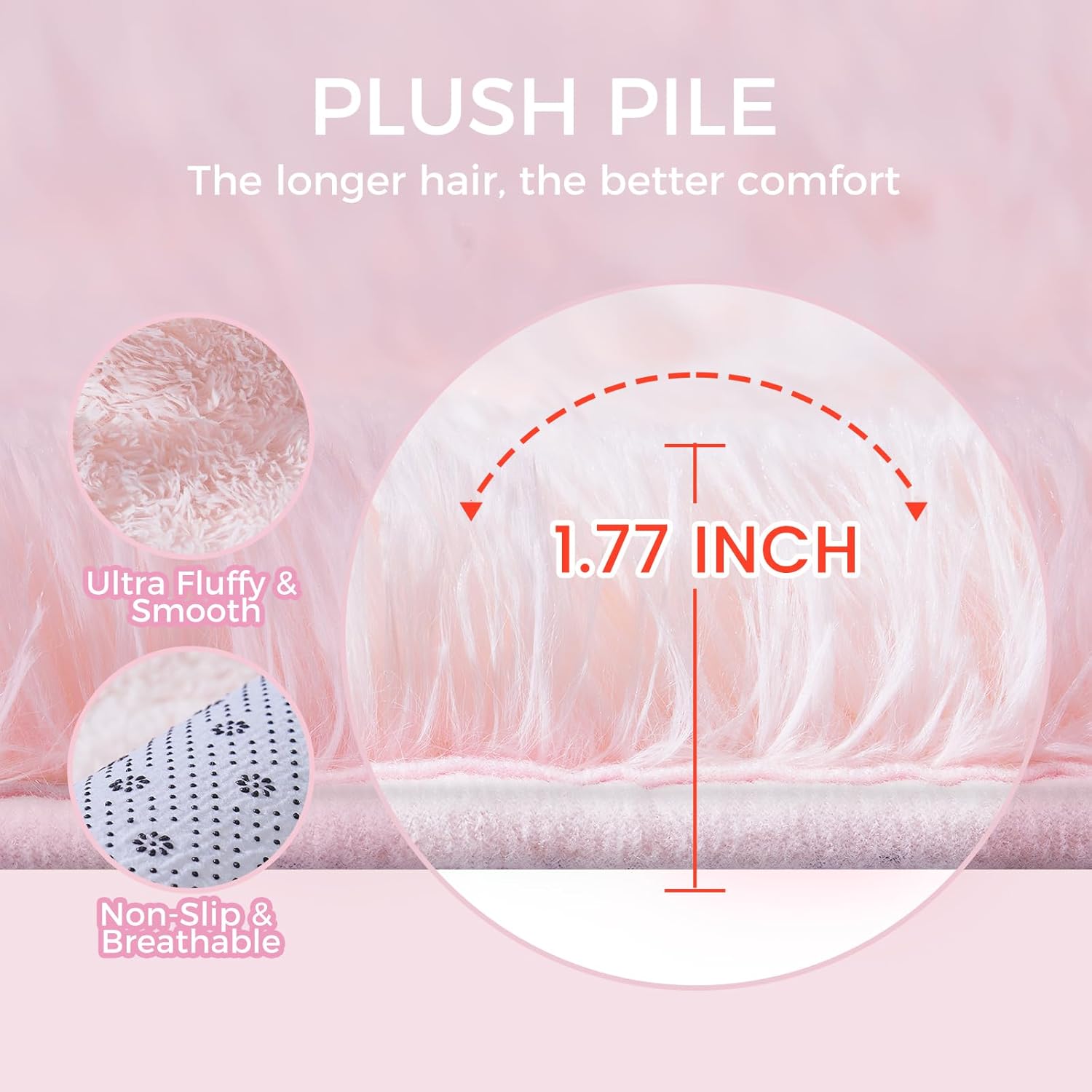 Ultra Soft Rug for Living Room, 6X9 Fluffy Shag Area Rug for Bedroom, Modern Shaggy Carpets Fuzzy Rug for Teens Dorm Nursery Home Decor Aesthetic, Upgrade Anti-Skid Durable, Pink