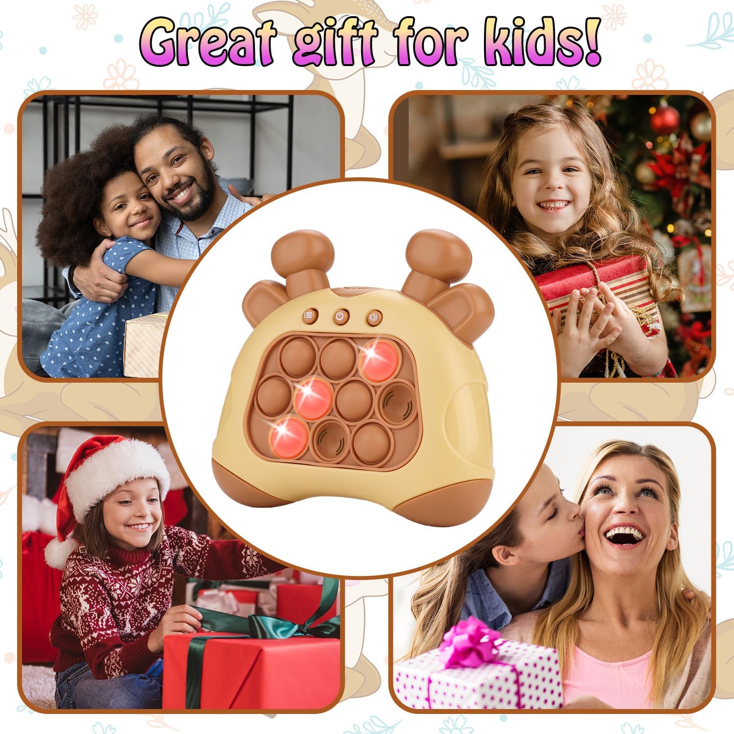 Fast Push Game, Deer Handheld Speed Push Bubble Game Console, Light up Pop Game Sensory Fidget Toys for Kids, Autism Sensory Toys, Birthday Easter Toy for Boys Girls Adults(Brown)