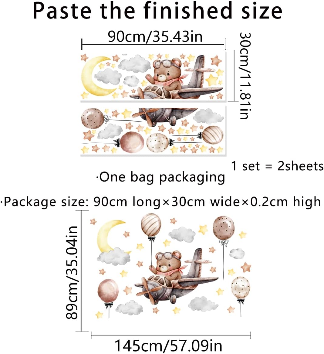 - Elements include balloons, bears flying airplanes, stars, moons and clouds. Warm and sweet wall art for a good dream every day.