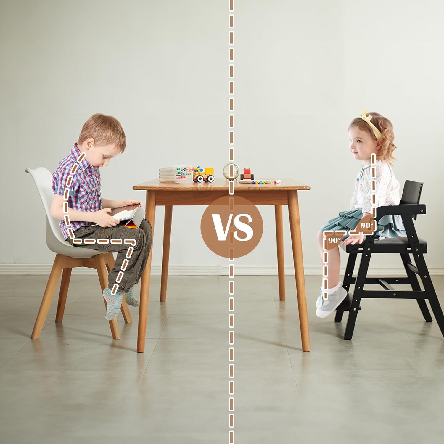 - Correct sitting posture--Multiple adjustable designs allow children to adjust to a suitable and correct sitting position while eating or studying. Prolonged use is beneficial for correcting sitting posture and cultivating a good habit