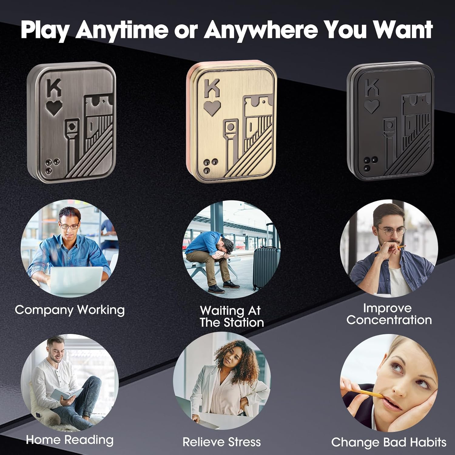 - 【RELEASE STRESS】:Whether you are a student or an office worker, you may face study or work pressure, which over time can produce negative emotions such as depression, hyperactivity and frustration. Using this adult fidget allows you to release stress and feel happy, while eliminating bad habits such as nail biting and smoking, so that you are no longer bored when you are alone.