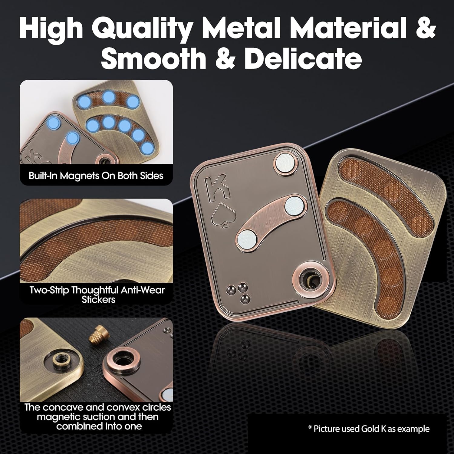 - 【POKER PUSH SLIDER】: The magnetic fidget toy utilizes internal magnets that simulate the unfolding process of playing cards when pushed in the direction of its position. The magnetic force provides force feedback and produces a crisp metallic clanking sound, adding to the satisfaction of using the fidget toys adults. The fidget toy can be used as a desktop accessory, you can play with it anywhere.【Gentle Reminder】We recommend this toy for use when you are alone or in noisy public places, as the metallic sounds made may cause uncomfortable to others!