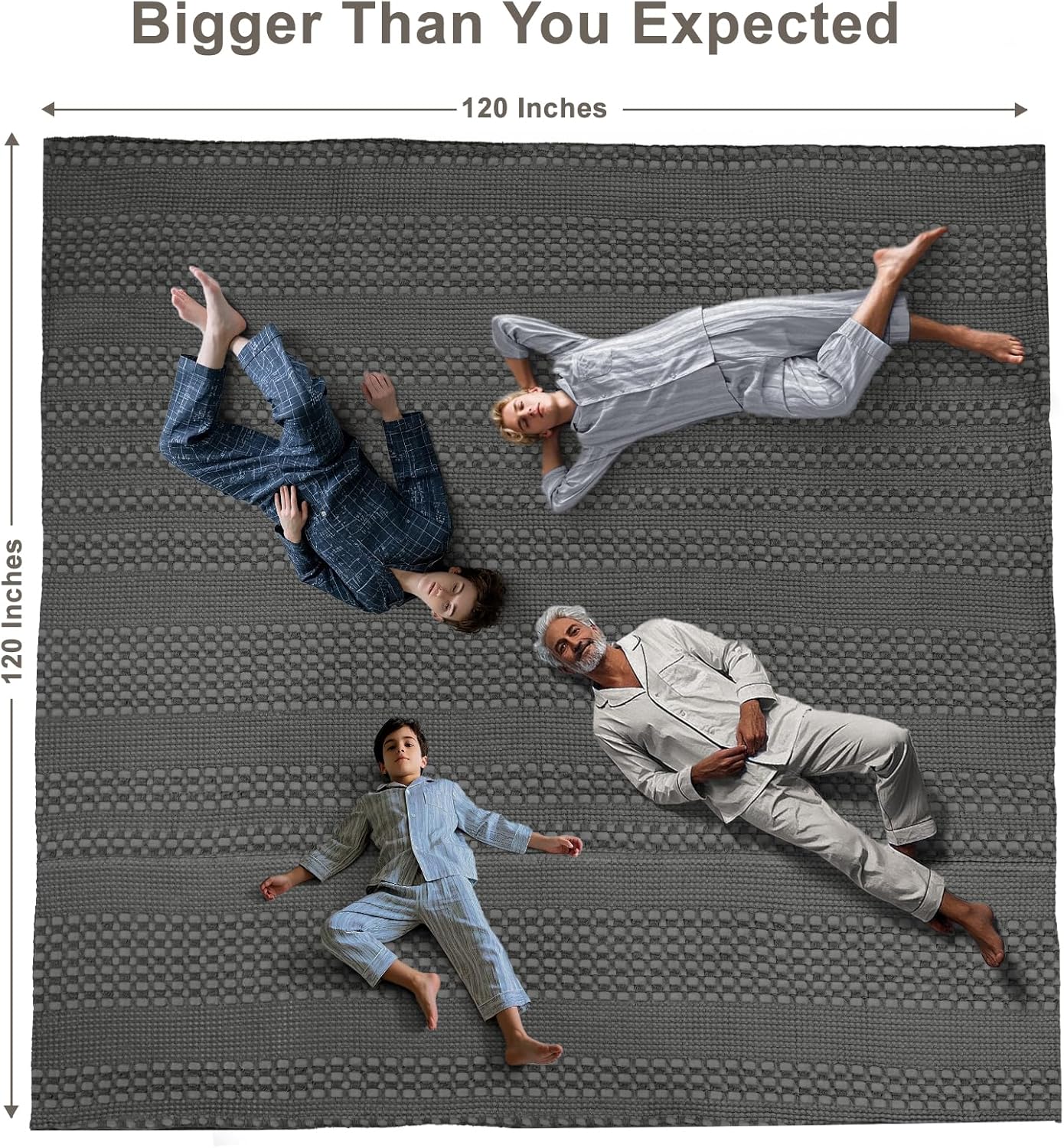 PHF 100% Cotton Waffle Blanket Oversized King 120"x120", Lightweight Breathable Extra Large 10'x10' Summer Blankets for Bed, Giant Big Luxury Aesthetic Woven Bedding for Home Decor, Charcoal Grey