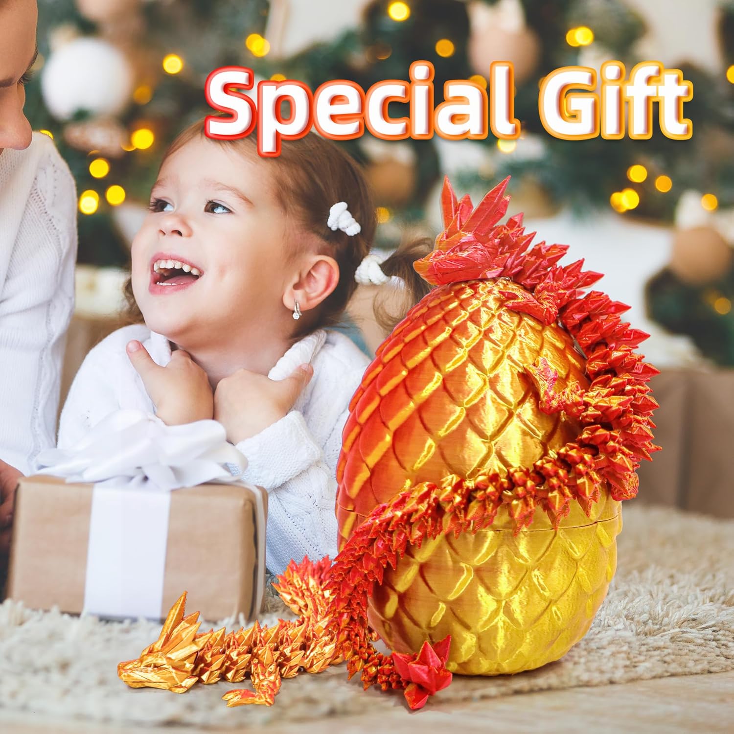 Dragon Egg - 3D Printed Egg with Flexible Pearly Sheen Dragon Inside, 3D Printed Surprise Gift, Articulated Dragon Egg Fidget Toy, Decor (12” Dragon,Red Mix Gold)