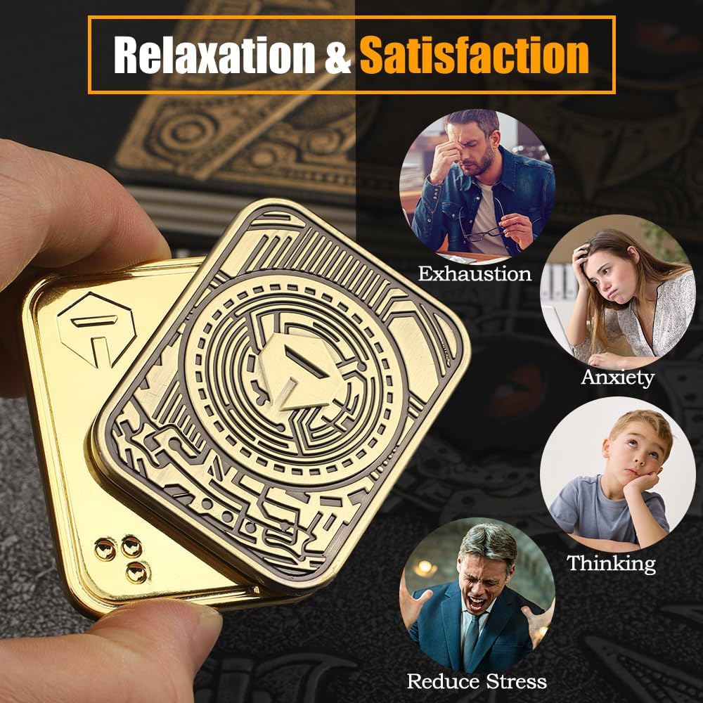 - Fidget Slider: It is made entirely of zinc alloy. The metal color is achieved through an electroplating process, resulting in a golden upper body and brass lower body. Every detail has been precisely machined for a smooth and comfortable surface. It’s the perfect way to keep your hands busy and relieve stress.