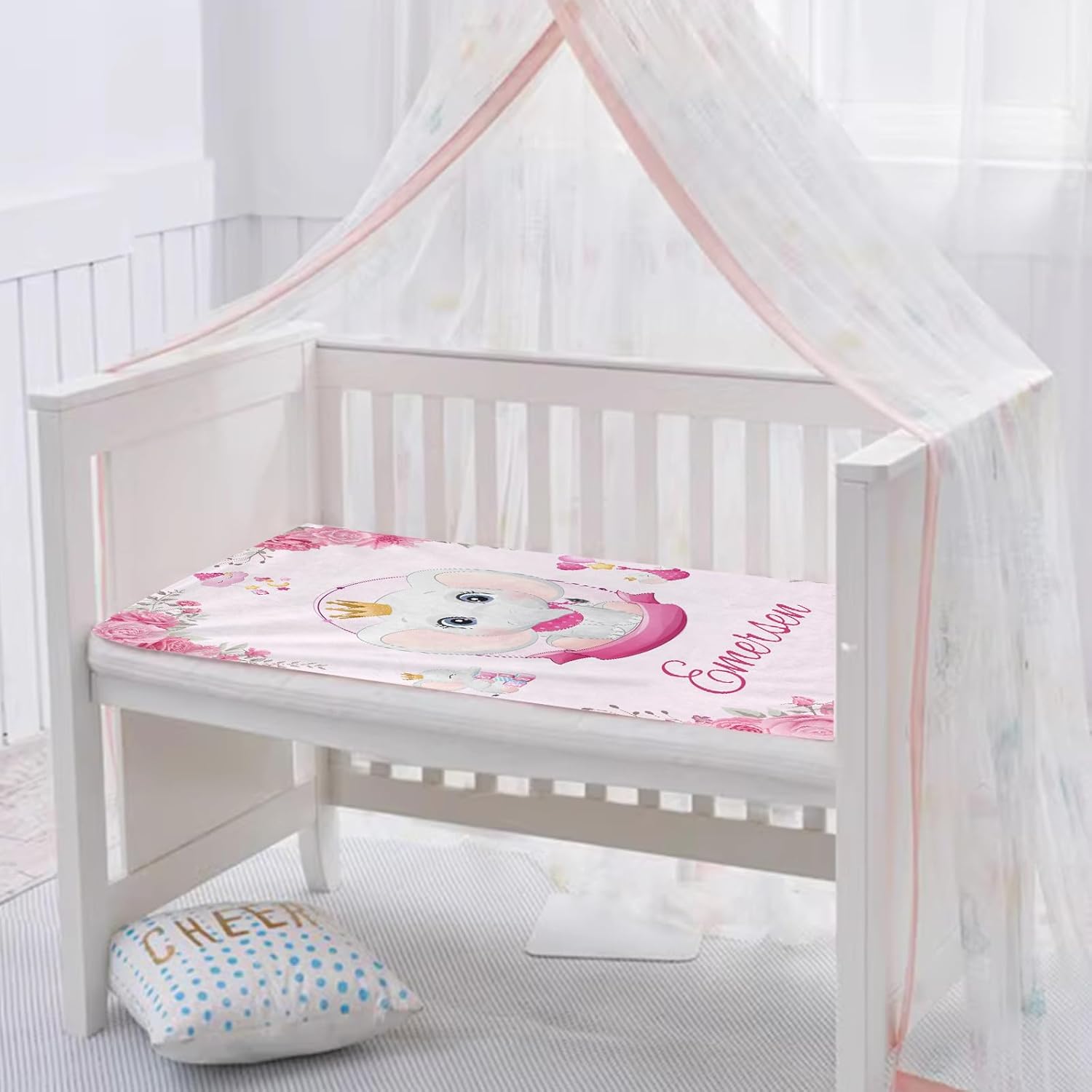 Personalized Baby Blanket with Name, Custom Pink Elephant Name Blanket Toddler Girls Soft Flannne Swaddling Blankets Customized Memorial Gift from Nana for Infant Newborn Shower