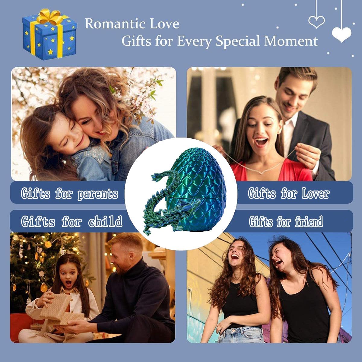 - ๐ใDivine Dragon Gift Set in Dragon Eggใ: 3D printed crystal dragons with a size of 30cm in a 13cm egg comprises a dragon egg-shaped present box and a divine dragon figurine. The dragon egg-shaped gift box infuses mystery and fun, enhancing the overall appeal of the set.