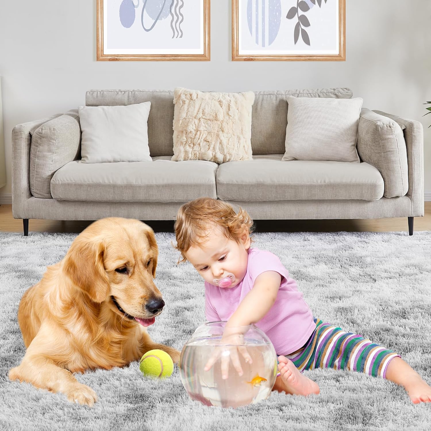 - Kid and Pet Friendly: This soft, long-pile area rug is made from safe and skin-friendly polyester materials. Even Babies or individuals with sensitive skin can enjoy its comfort without worrying about allergies. It brings comfort to every member of the family, including small dogs, without any harm or concern about the carpet causing any harm to them