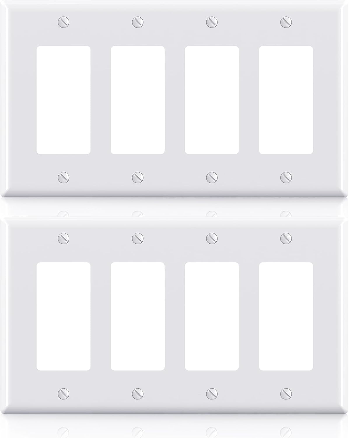 ELEGRP 4-Gang Decorative Wall Plates, Mid-Size 4.88" H x 8.57" L Unbreakable Thermoplastic Faceplate Cover for Decorator Receptacle Outlet Switch, UL Listed (2 Pack, Glossy White)