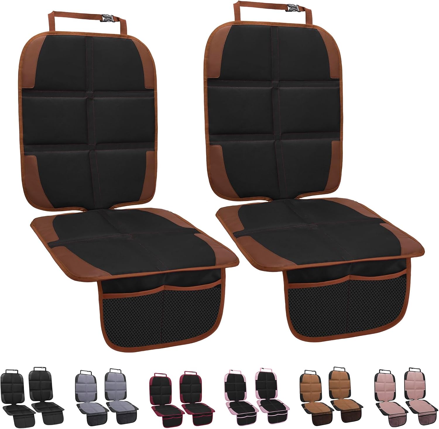 Car Seat Protector for Child, 2 Pack With Mesh Pockets & Non-Slip Backing 600D Durable Under Baby Seat Cover for Back Seat (Dark Brown, Standard)